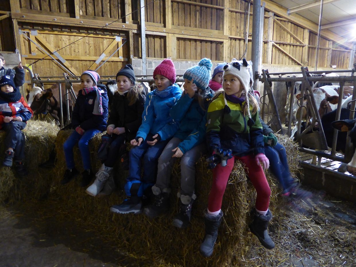 Der Bauer hat uns den Stall gezeigt, wo sehr viele Kühe waren.