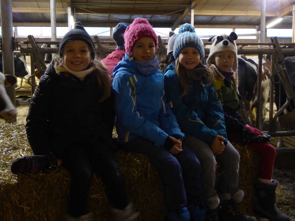 Als wir angekommen sind, haben wir beobachtet, wie die Kühe gemolken werden.