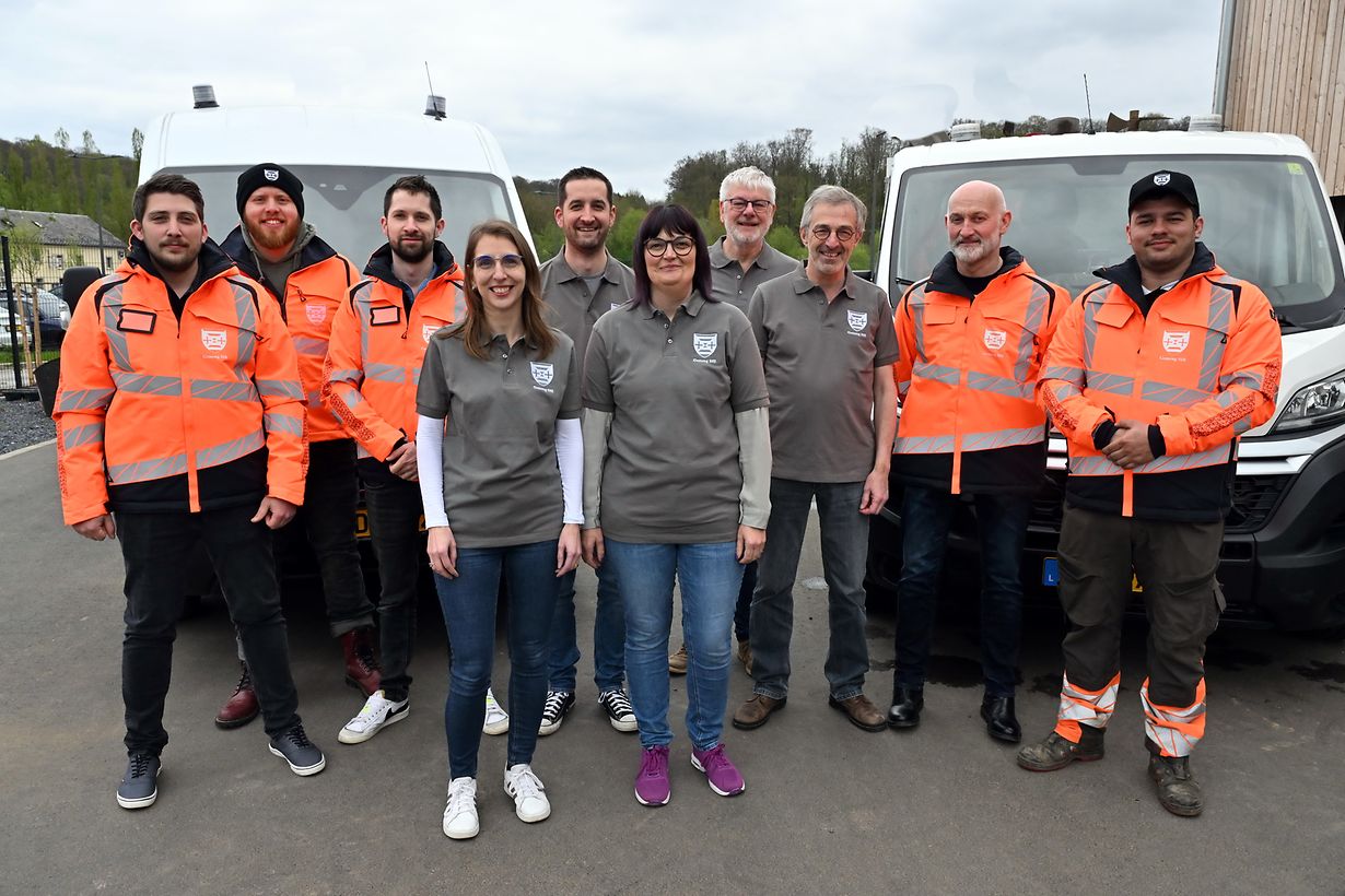 Schweebech: Nit manner wi 6 000 Euro huet de Schëfferot vun der Gemeng Sëll ausgin, fir senge Matarbichter mat enheetlichem Arbichtgezei auszerëschten. Am Kader vun enger klenger Feier an de Räimlichkeeten vum Technischen Service vun der Sëller Gemeng zu Schweebech, war de Buergermeeschter Gérard Zoller ganz houffrig, fir senge Matarbichter vum Technischen Service niewt engem Soft Shell, enger Wanterjackette, enger Box, engem Gillet, enger Mutz, enger Kâp, engem Pully an engem T-shirt versin mam Logo vun der Gemeng Sëll können ze iwerreechen. Och di Leit aus dem administrativen Deel vun der Gemeng sin mat engem einheitlichen Pollo agekleed gin. A senger Ried huet de Buergermeeschter drop gehaalen, dat dess nei Kleedung, propper an ëmmer gut versuergt soll derzou beidroen, fir alle Matbierger aus der Gemeng ze weisen, dat hirt Gemengepersonal als gesamt Team ëmmer am Asaatz fir si do ass. (CR) (Foto: Charles Reiser)