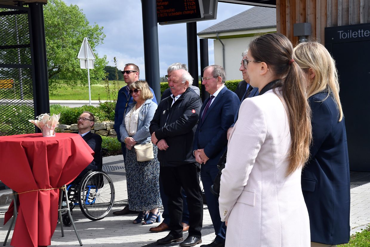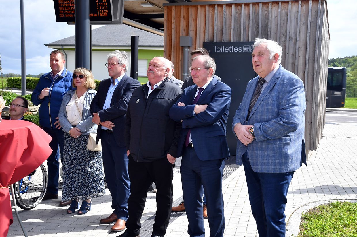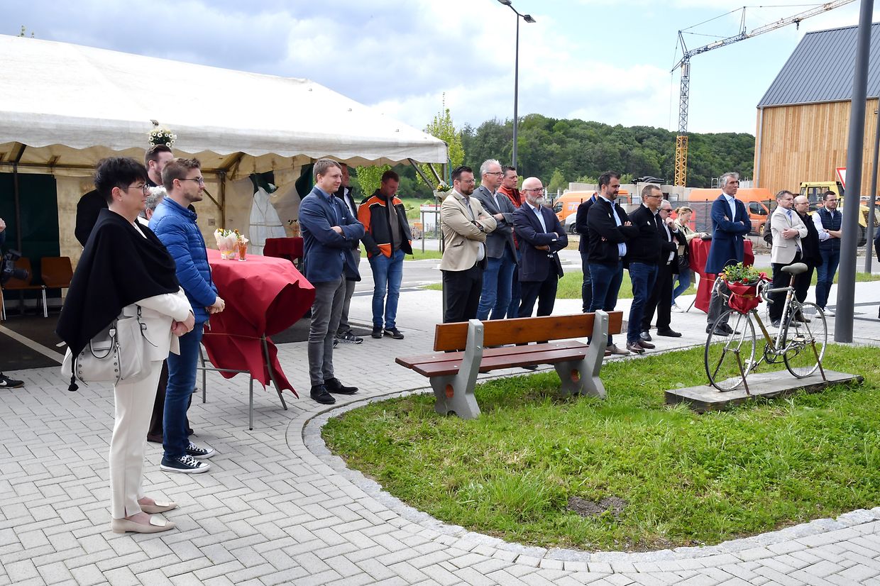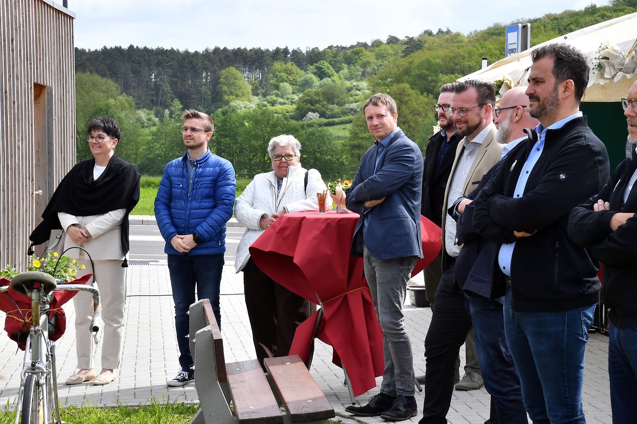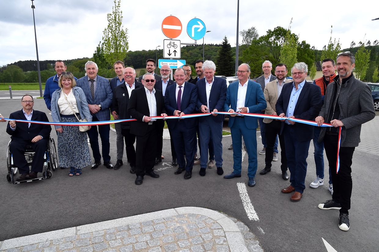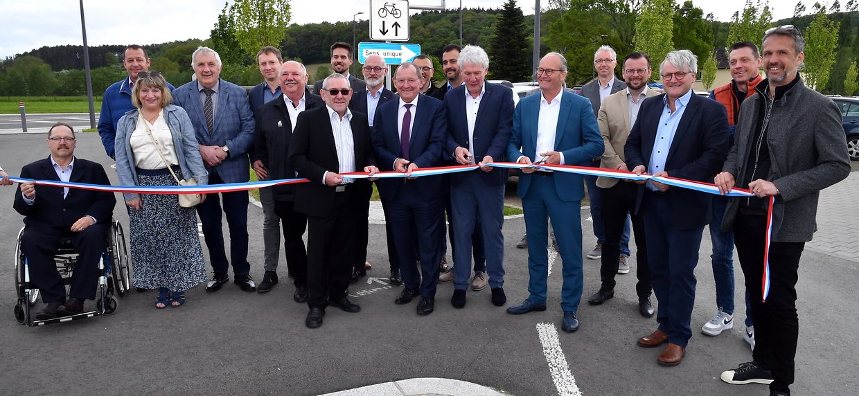 Zesummen mam Minister Claude Turmes, dem Chamberpräsident Fernand Etgen a Vertrieder vum Kanton Réiden an de Verwaltungen mat villen Éiergäscht ass den neien Park and Ride op der Schweebecherbréck offiziell den 17. Mee 2023 ageweit gin.
