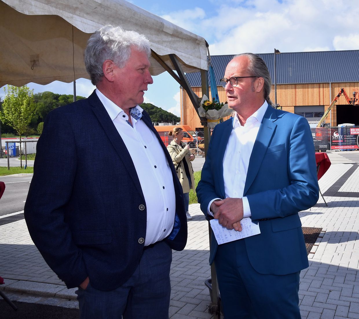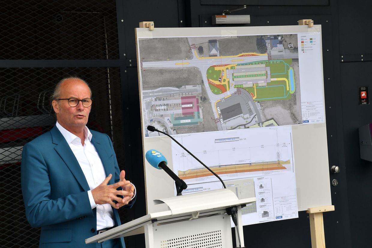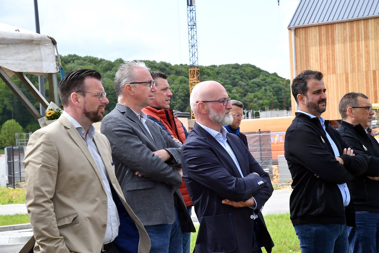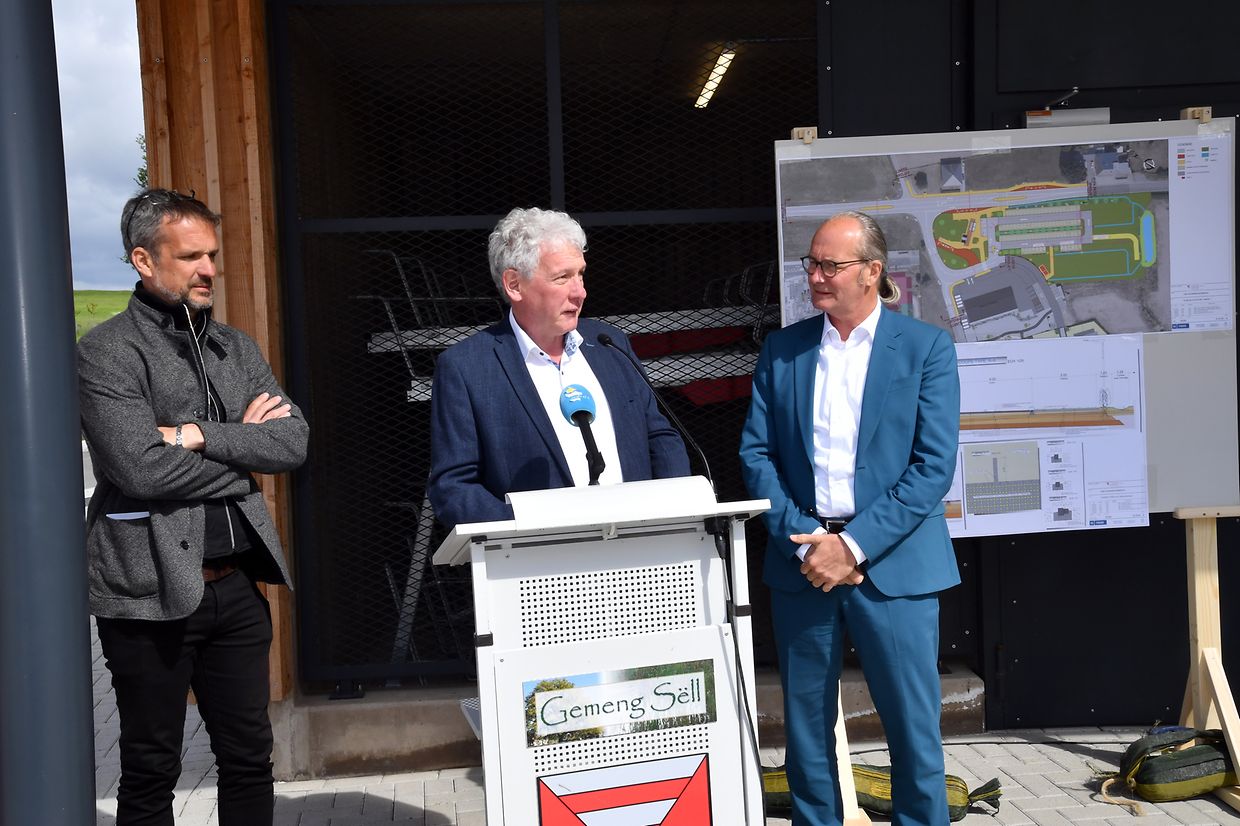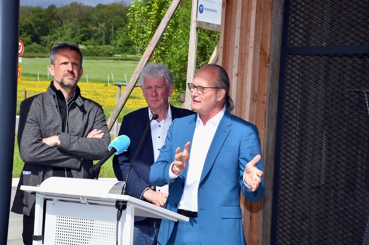 Zesummen mam Minister Claude Turmes, dem Chamberpräsident Fernand Etgen a Vertrieder vum Kanton Réiden an de Verwaltungen mat villen Éiergäscht ass den neien Park and Ride op der Schweebecherbréck offiziell den 17. Mee 2023 ageweit gin.