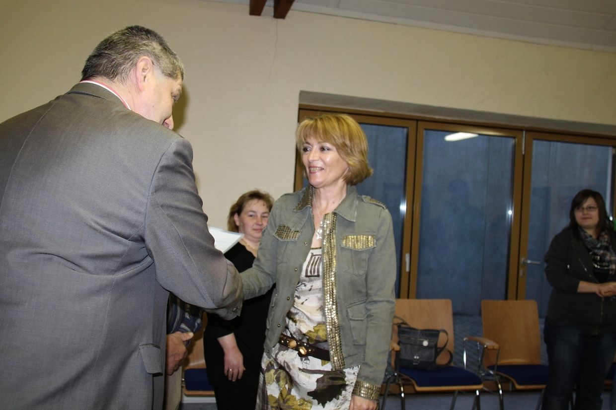 Bürgermeister Francois Rossler begrüsste zu dieser Feier auch die Schöffen Patrick Comes und Fernand Wolter , die Gemeinderätin Georgette Renckens-Heuertz sowie den Kommandanten der lokalen Feuerwehr Alex Petitnicolas . Nachdem Bürgermeister Rossler die Wichtigkeit solcher Kurse hervor gestrichen hatte, bedankte er sich im Namen der Gemeindeverwaltung bei allen Kursteilnehmern und überreichte Frau Marguerite Schmit-Voermans einen Blumenstrauß.