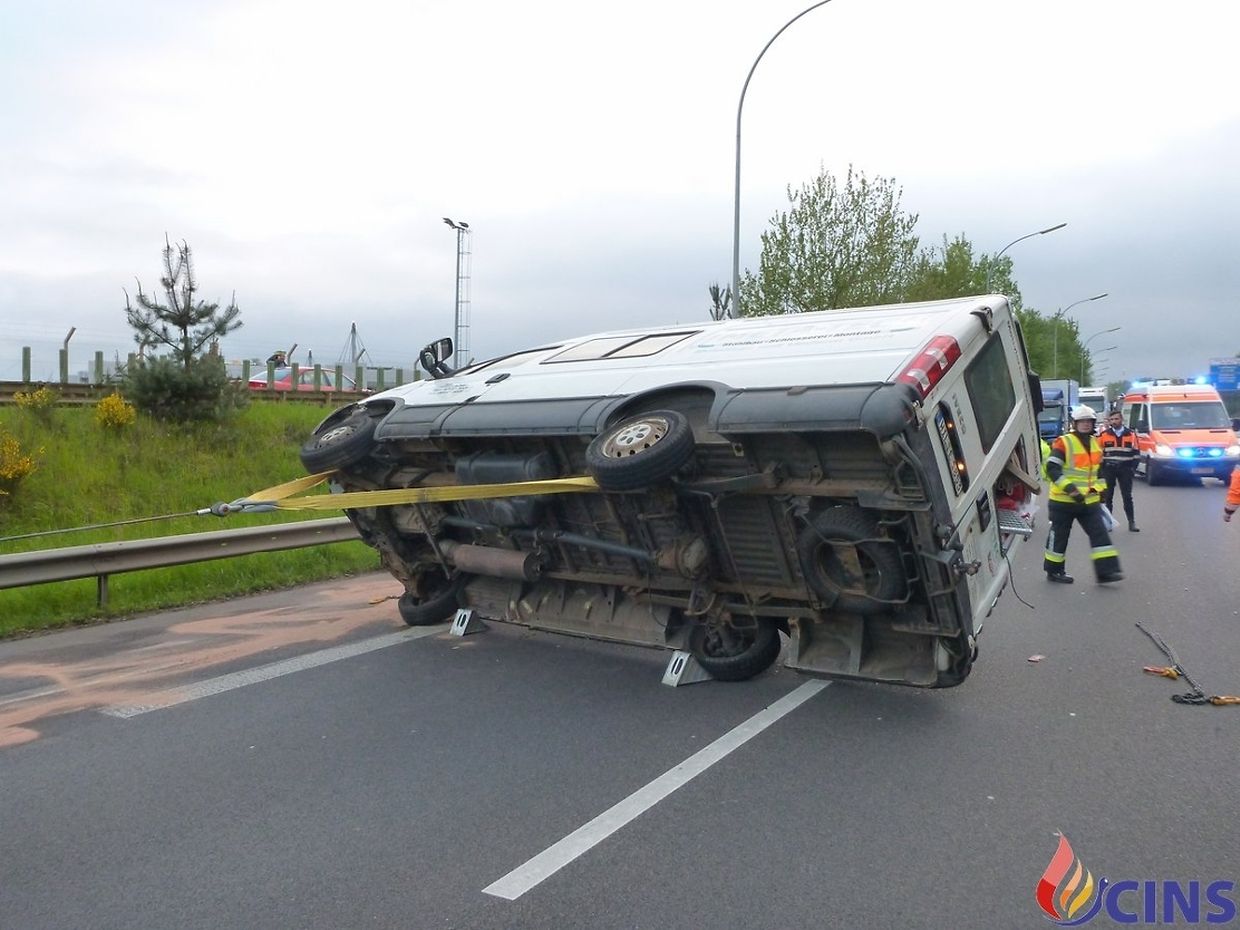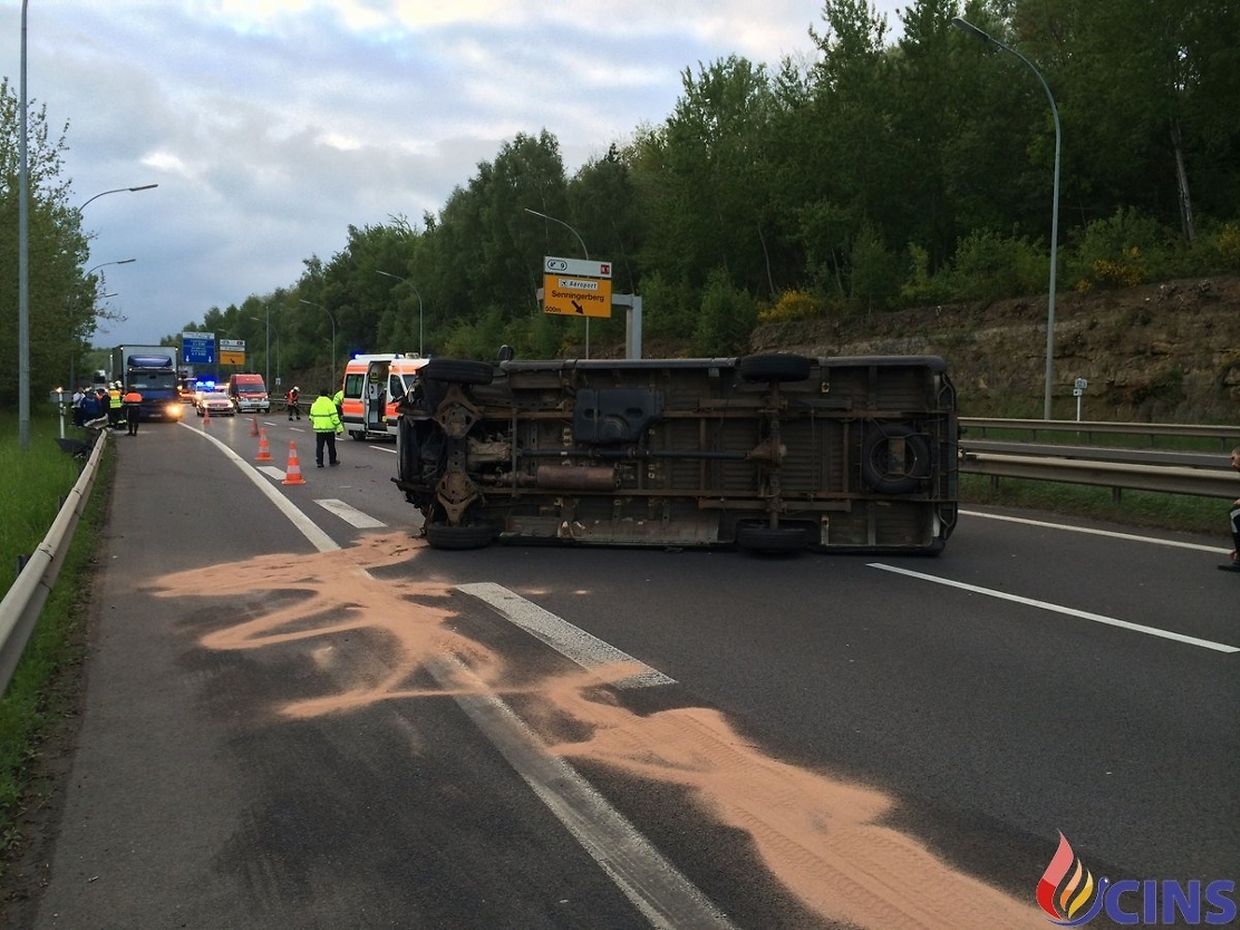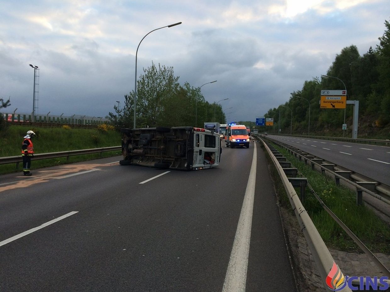 Lieferwagen überschlug sich auf der Autobahn A1.