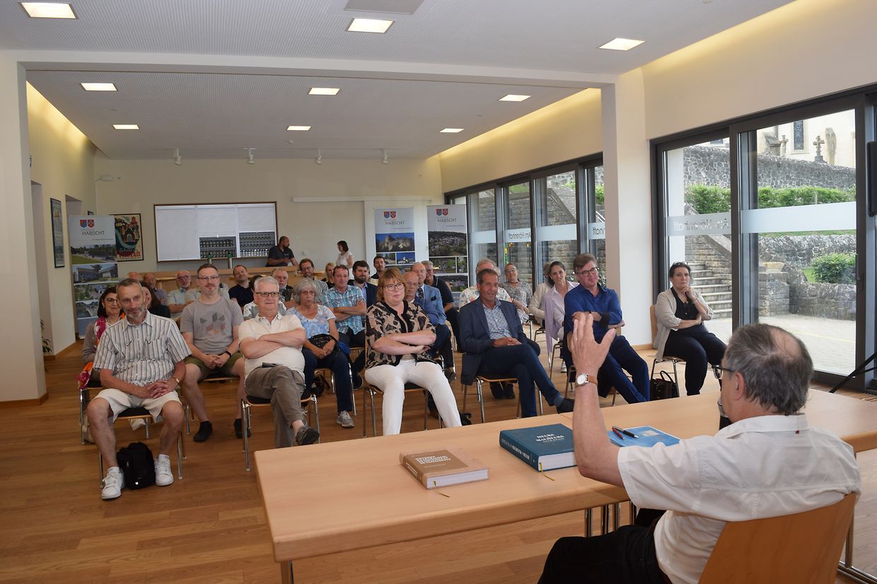 Vor über 30 gebannt zuhörenden Anwesenden stellte Autor und Regionalhistoriker Jean Nehrenhausen vor Kurzem sein neuestes Buch „Heurs et Malheurs au Val d’Eisch“ im „Härenhaff“ in Simmern vor. Auf gekonnt humoristische Art und Weise ging er auf die Entstehungsgeschichte seines Werks ein und nahm die Zuhörer mit auf eine spannende Zeitreise durch die Geschichte der Herrschaften Simmern, Hollenfels und Ansemburg vom Mittelalter bis ins 19. Jahrhundert.