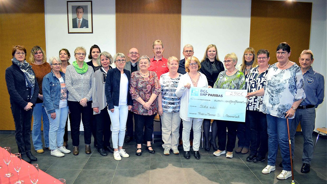 Nicht weniger als 2 500 Euro wechselten aus Berlé-Pommerloch nach Bettemburg zu Blëtz a.s.b.l.. Diese Organisation kümmert sich um die von einem Hirnschlag betroffenen Menschen. Die Summe stammt aus dem Erlös des Verkaufs der Hâmeschmieren vom letzten Januarsonntag.