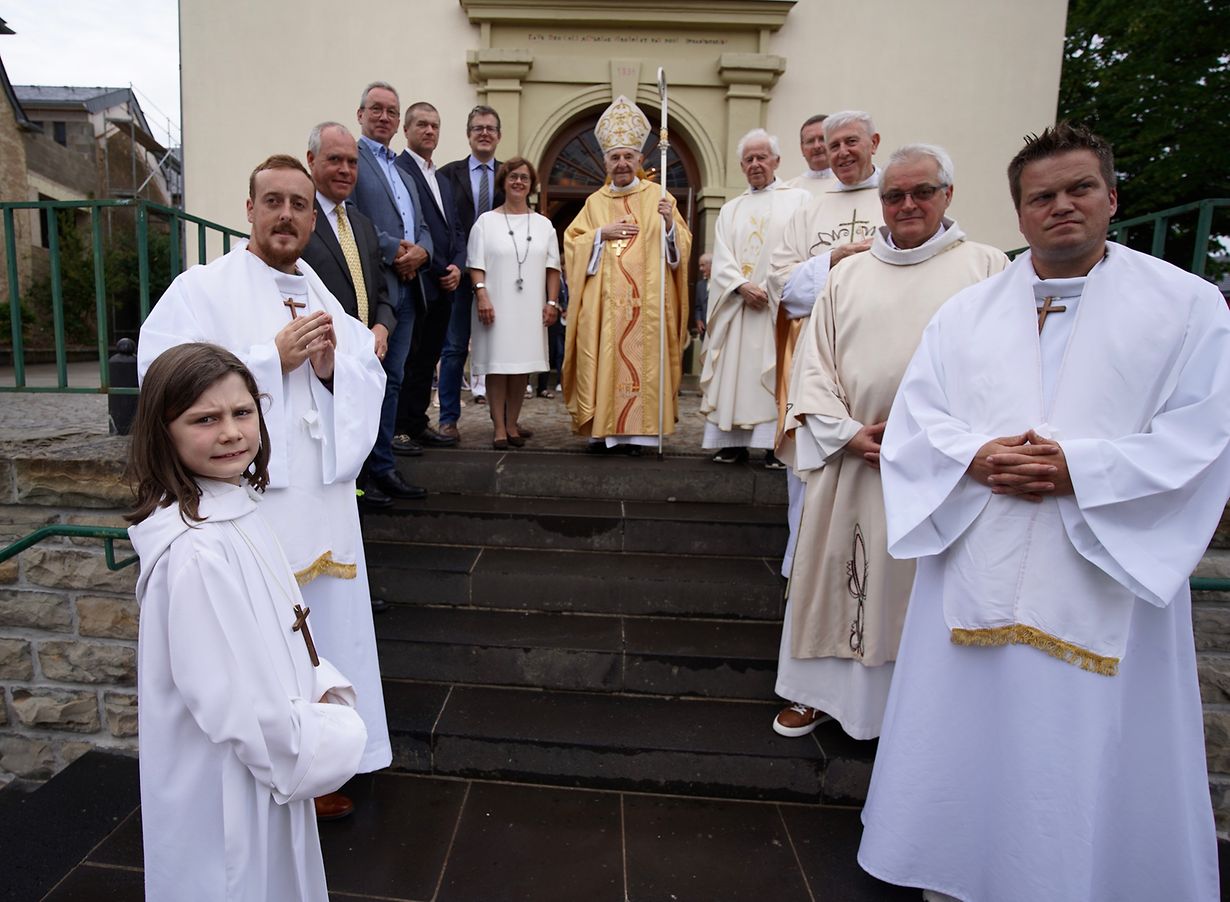 De 26. Juni 2022 woar en Dag vun dankbarer Erënnerung un d’Wërke vu Gott an dësem Haus an u Persounen, déi hei eng wichteg Hand mat ugepakt hunn. Ze ernimmen wären do di Häre Geeschtlech, mat engem spezielle Grouss un den Här Laurent Drees, d’Marie-Jeanne an de Jemp Stronck-Schaeffer, déi joarzéngtelaang vill Stonnen an dëser Kërrech verbruet hunn, firdass d’Haus Gottes tipptopp an der Rei an dem Ulass entsprechend schéi gerëscht woar, d‘Membere vum Kërcherot, déi am Laf vun de Joare wichteg Entscheedungen geholl hunn, d‘Choralen an d‘Organisten, déi mat hirem Gesang an Orgelspill d’Gebied vun de Leit an de Luef Gottes ënnerstëtzt hunn.