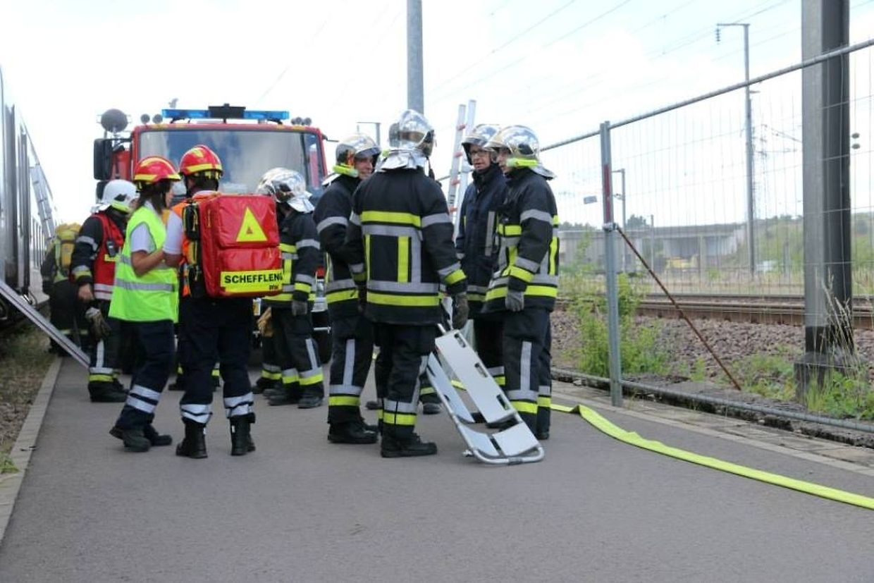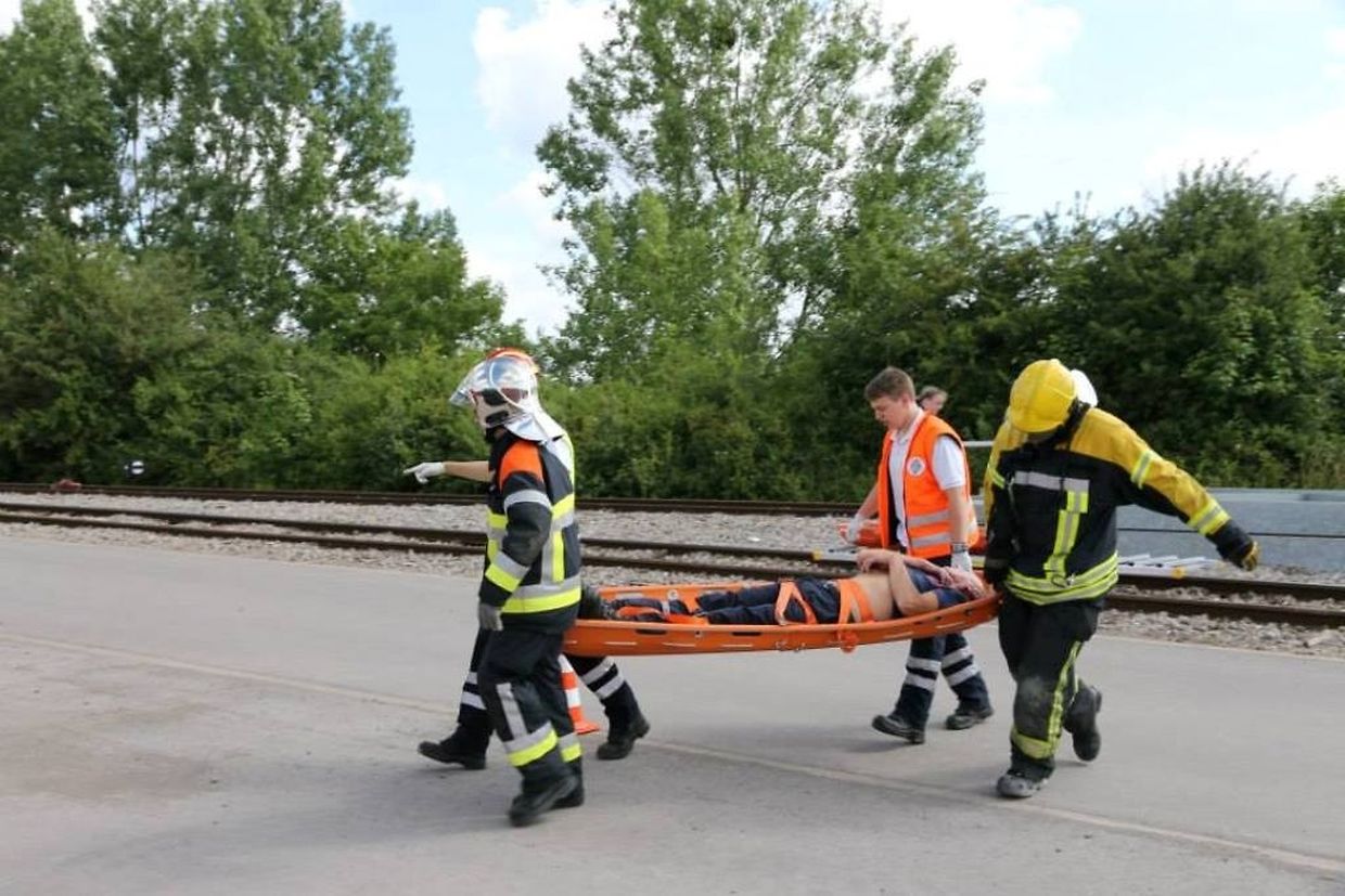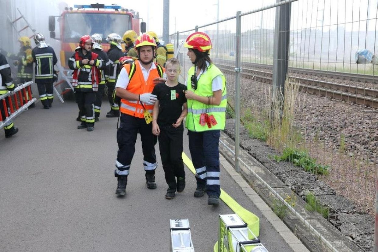 Nun galt es das erlernte theoretische Wissen in die Praxis umzusetzen. Insgesamt 40 Feuerwehrfrauen und -männer mussten nun, teils unter Atemschutz, die Passagiere aus dem komplett verrauchten Abteilen bergen. Als erste Hürde galt es, in den Zug zu gelangen. Durch einen technischen Defekt konnten die eigentlichen Seitentüren von außen nicht geöffnet werden, so dass Atemschutzträger die Türen zwischen dem letzten Waggon und der Lok öffnen mussten und somit Zugang zu den eingeschlossenen Passagieren hatten. Nun erst konnten die Einsatzkräfte die Türen von Innen öffnen und die verrauchten Abteile durchsuchen.