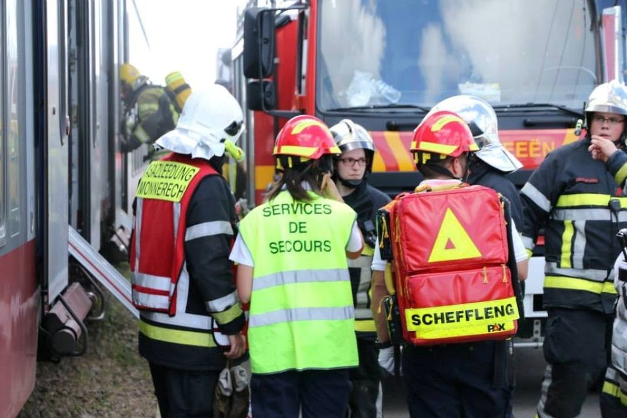 Am Samstagmorgen, dem 21.06.2014 wurden die Einsatzmannschaften der Zentren aus Monnerich, Schifflingen und Ehlingen/Mess mit dem Stichwort alarmiert, dass es zu einer unbekannten Rauchentwicklung in einem sogenannten „DOSTO-Zug“ kam. Dabei handelt es sich um einen Doppelstockzug, bestehend aus 4 Personenwagen und einer Lokomotive. Vermisst würden insgesamt 10 Passagiere sowie der Lokführer.