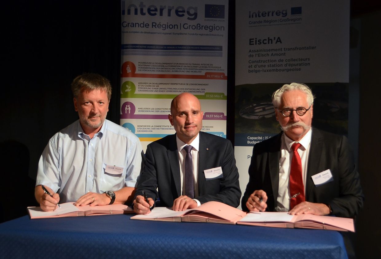Am Freitag, den 6. Juli 2018 wurden die Finanzierungsvereinbarungen für Bau und Unterhalt der Bauwerke zur Abwasserklärung der oberen Eisch unterschrieben. Es handelt sich hierbei um die neue Kläranlage einer Ausbaugröße von 15.600 EW an der belgisch-luxemburgischen Grenze bei Steinfort mit den dazugehörigen Bauwerken und Abwassersammlern. Mit diesem Projekt wird eine positive Auswirkung auf die Qualität der unteren Eisch und auf das Einzugsgebiet der Mosel erzielt. Das grenzüberschreitende Projekt wird durch europäische Fördergelder unterstützt