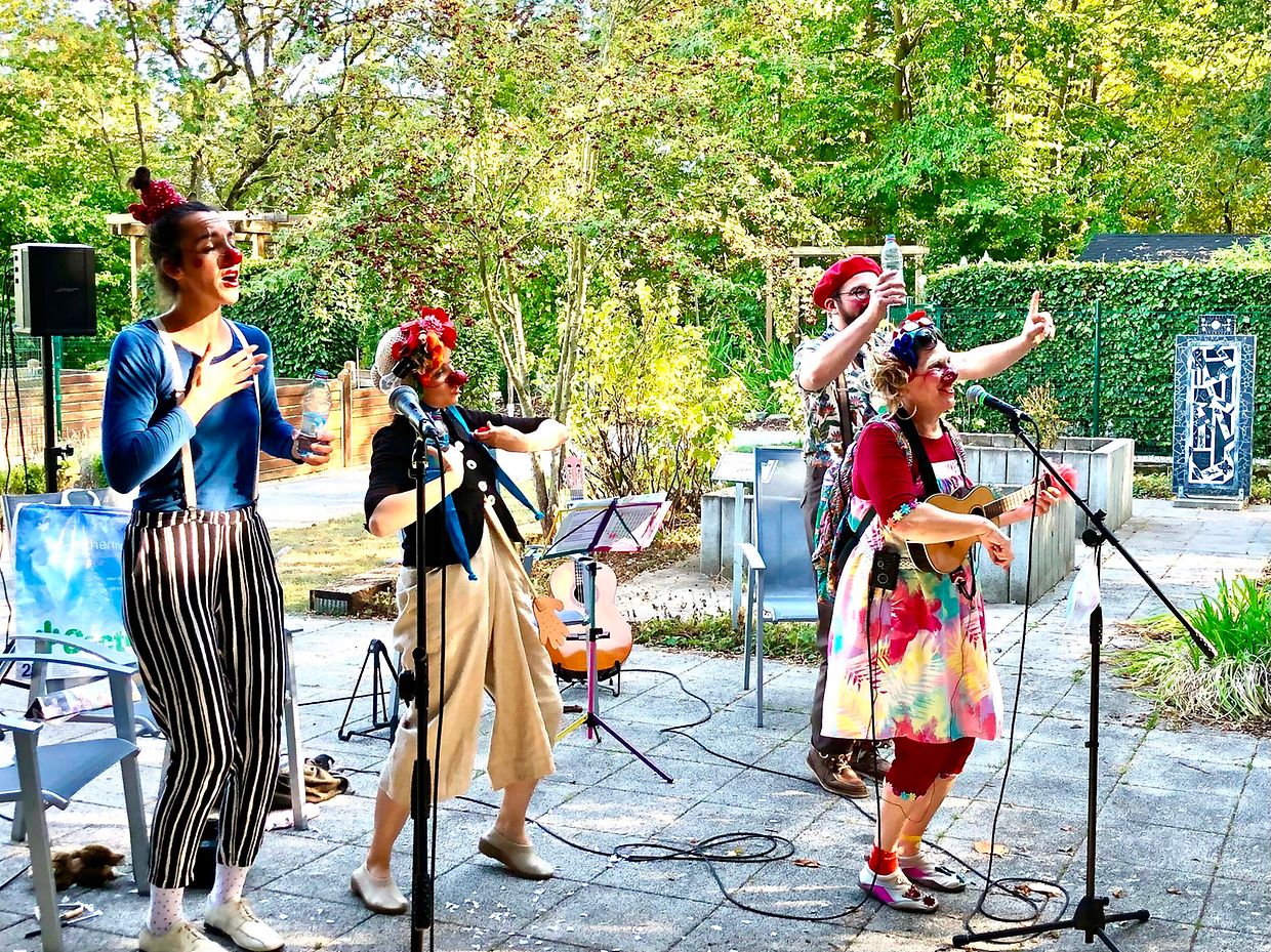 Gläich 2 mol hunn d'Spidolsclowne vun der Associatioun Île aux Clowns hire Musekspektakel am Gaart vum HIS zu Stengefort gespillt. Bei de leschte Sonnestrale konnten d'Leit franséisch, däitsch a lëtzebuergesch Klassiker matsangen an hunn e flotten, ofwiesslungsräichen Nomëtten erlieft. Dat Ganzt am Respekt vun de sanitäre Reegelen.