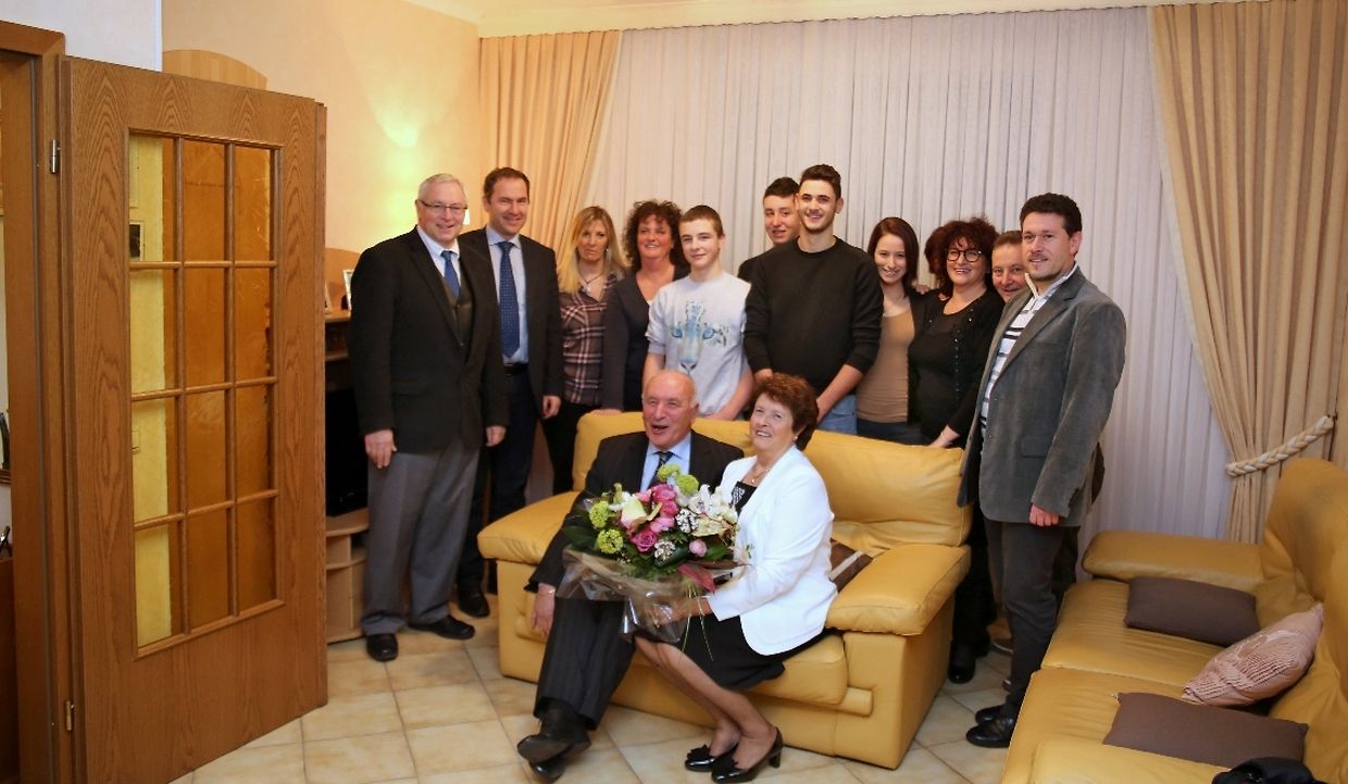 Die Trauung fand am 16 Januar 1964 in Italien statt. Aus der Ehe gingen die Söhne Antonio und Giuseppe sowie zwei Töchter Costantina und Anna Maria hervor. Im Laufe der Jahre erweiterte sich die Familie um neun Enkelkinder. Bis zur seiner Pensionierung arbeitete Emanuele Nardella bei der Arbed, während Ehefrau Isabella den Haushalt führte und sich der Erziehung der Kinder widmete. Zur goldenen Hochzeit gratulierten Bürgermeister Jean-Marie Wirth sowie die Schöffen Tom Matarrese und Daniel Frieden und überreichten dem Jubelpaar ein Blumenarrangement. (NiCa)