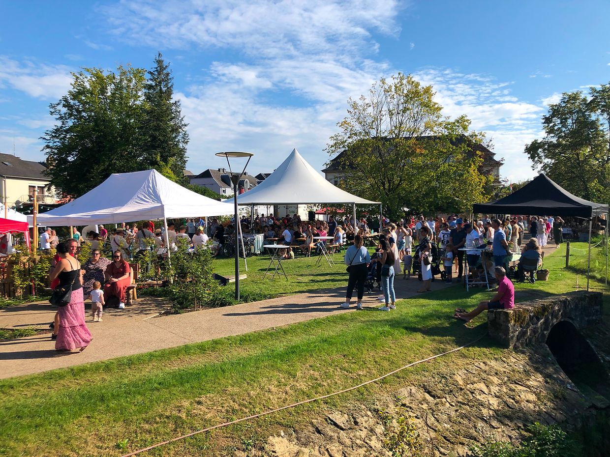 De 4. a 5. September war et endlech erëm esou wäit - „En Dag bei der Baach“ zu Stengefort. Eisen traditionelle Maart mat sëllegen Handwierks- a Kënschtlerstänn war dës Kéier, opgrond vun den Aarbechte beim Weier, am neie Park bei der Villa Collart. E neie Setting, mee mat dem nämmlechten Esprit.