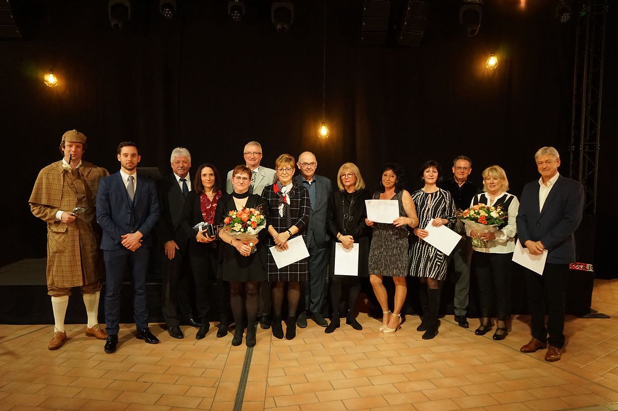 Geéiert goufen op dësem Owend fir 20 Joer Déngscht, den Här Christophe André, Gäertner am Service Technique an d’Madamm Jackie Komes, Léierin an der Stengeforter Grondschoul.