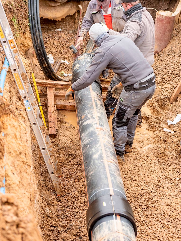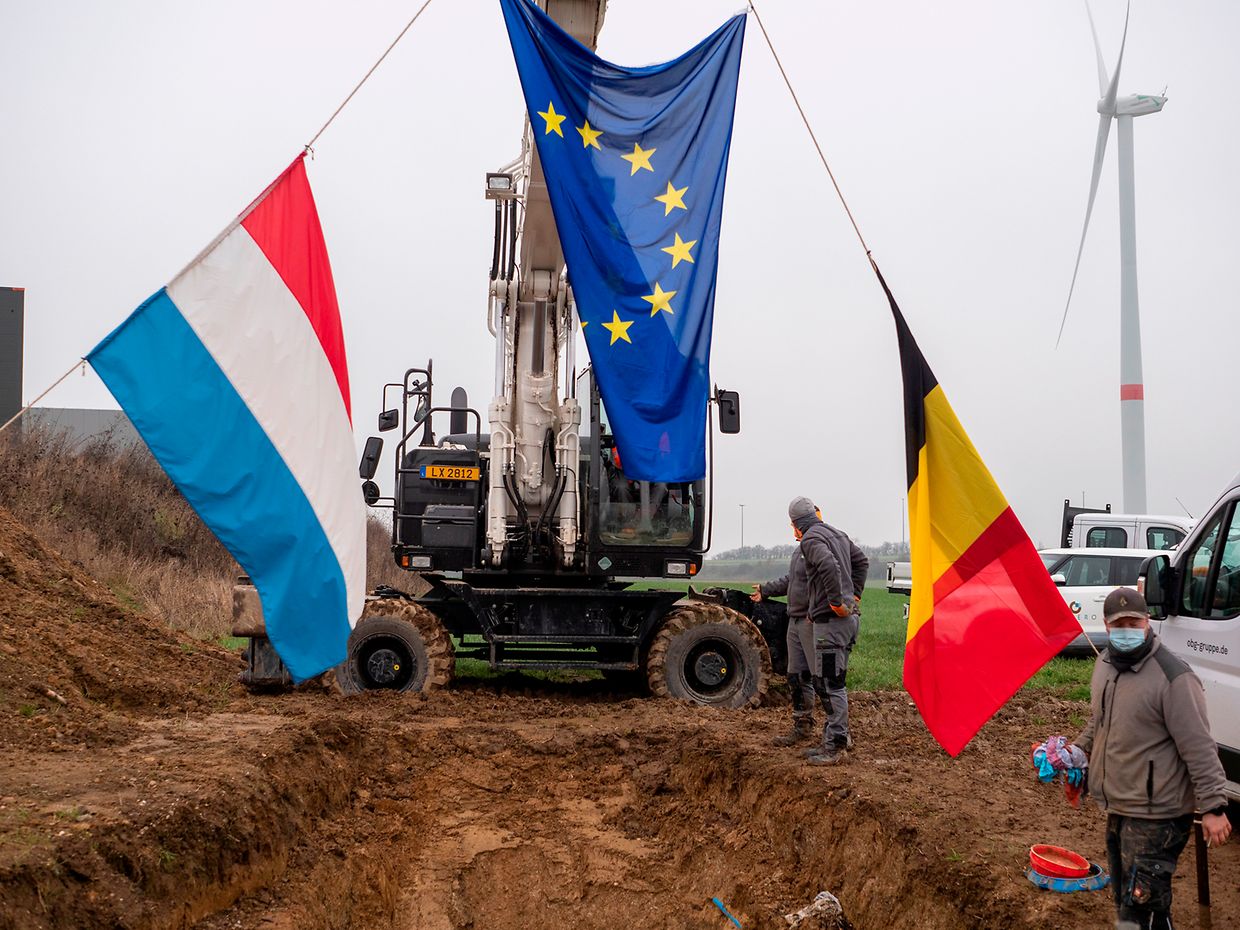 Der 9. Dezember 2020 ist ein Meilenstein im grenzüberschreitenden Projekt. Hier wird die Verbindung der luxemburgischen mit der belgischen Druckleitung an der Landesgrenze hergestellt.