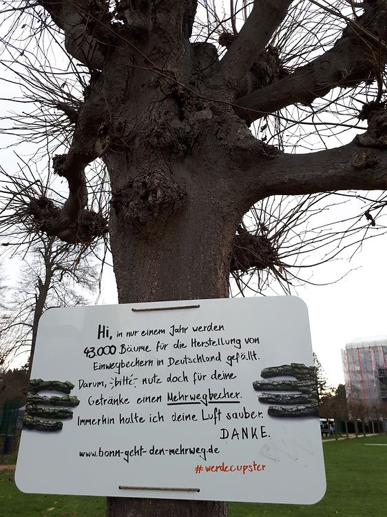 Steinsel Botschaft eines Baumes Josette Meckel Veröffentlicht am Freitag, 16. Oktober 2020 um 09:57 7324 Steinsel, Luxemburg "In nur einem Jahr werden 43ooo Bäume für die Herstellung von Einwegbechern in Deutschland gefällt. Darum bitte nutz doch für deine Getränke einen Mehrwegbecher. Immerhin halte ich dir deine Luft sauber." Dieser Beitrag ist Teil einer mywort-Mission: Der Baum Unpassenden Inhalt angeben Weitere Neuigkeiten von Josette Meckel > Sonnenuntergang 14.11.25 Brouch (Mersch) Buerg Useldeng 13.11.25 Useldingen Bam mat Gesiicht 13.11.25 Brouch (Mersch) Um Flouer 13.11.25 Brouch (Mersch) Sonnenuntergang 09.11.25 Luxemburg - Dommeldingen