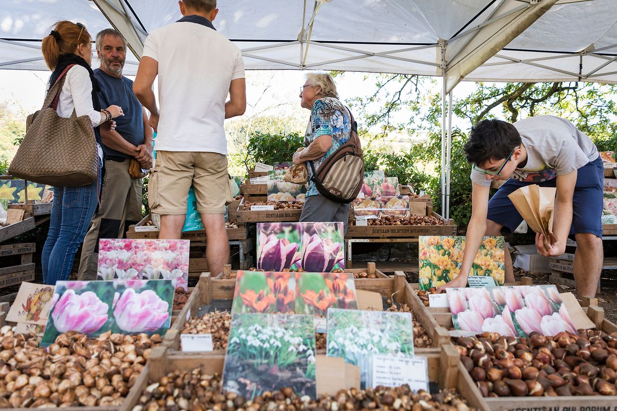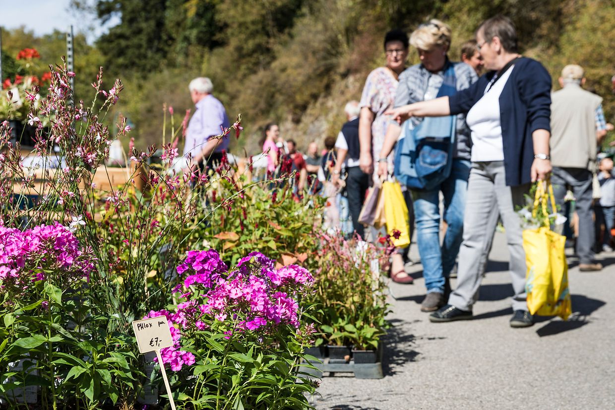 In der malerischen Umgebung des Schlosses reicht die Angebotspalette der rund 50 nationalen und internationalen Aussteller von Raritäten und Besonderheiten über Stauden, Gehölze, Obststräucher, Rosen und Balkonpflanzen, Kräuter, Blumenzwiebeln bis hin zu Floristik und Gartenaccessoires. Dekoration und Kunsthandwerk, kulinarische Produkte, fachliche Beratung, Workshops für Groß und Klein (Schlosshof/Naturparkstand und Schlossgarten/Ecole du Goût-CNDS Entraide), Burgführungen (Sonntag 11h und 15h mit Jean-Jacques List/Service des Sites et Monuments nationaux) sowie Köstlichkeiten für zwischendurch runden das Angebot ab.