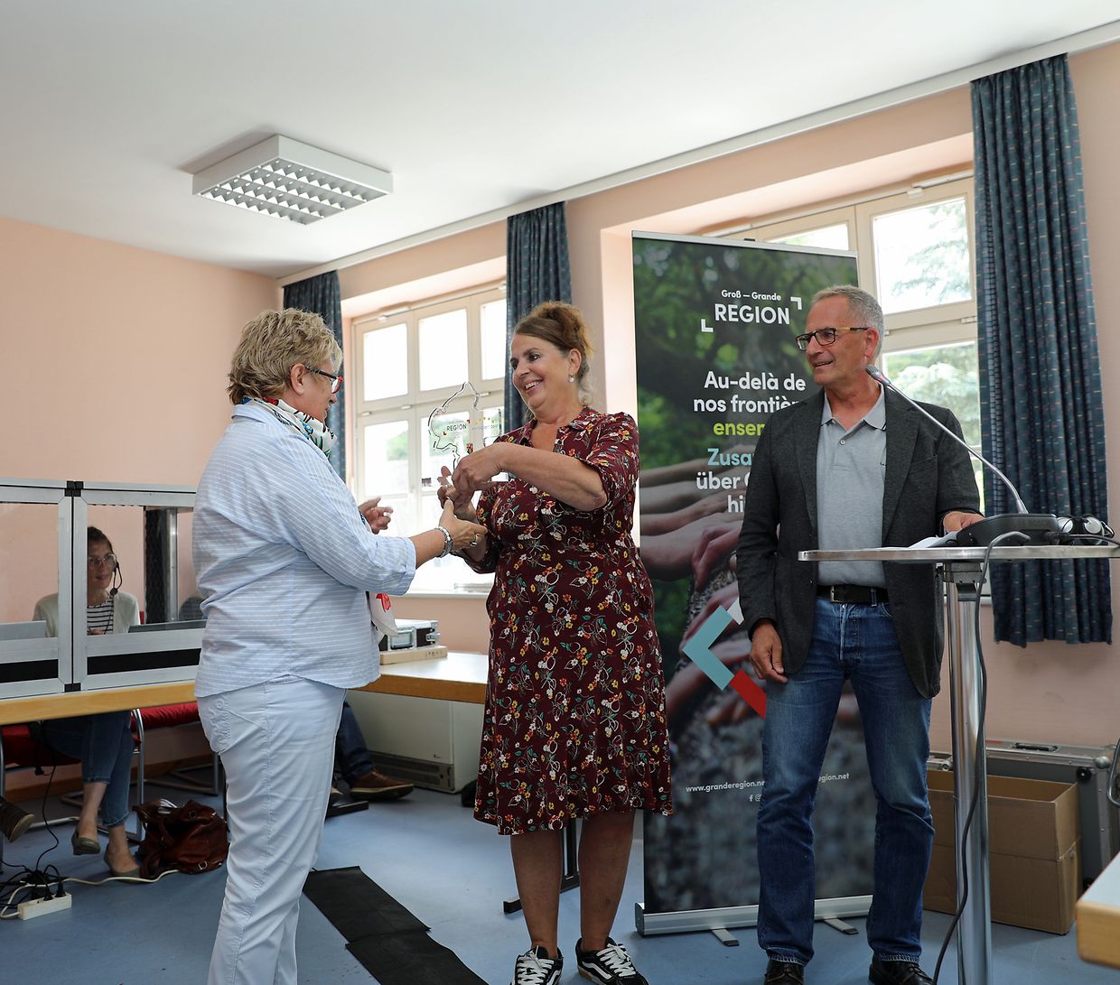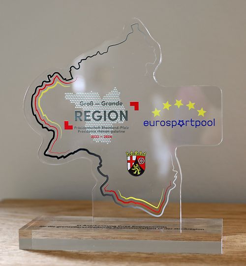 In Anwesenheit der persönlichen Beauftragten der sechs Regionen überreichte der interregionale EuroSportPool die Ehrenplakette anlässlich einer kleinen Feierstunde im Bürgerhaus in Ralingen (Deutschland). In seiner Ansprache unterstrich Klaus Klaeren, Mitbegründer des Pools, die hervorragende länderübergreifende Zusammenarbeit und den unermüdlichen Einsatz, mit dem die LASEP-Präsidentin seit vielen Jahren den Nachwuchs im Grundschulalter begleitet, fördert und prägt, wobei das gegenseitige Kennenlernen sowie das Prinzip von Fairplay, Inklusion und Achtung von Unterschieden im Fokus stehen.