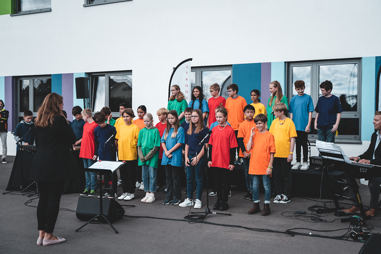 De 24. September gouf a Presenz vum Edukatiounsminister Claude Meisch a vum Stroossener Schäffen- a Gemengerot, déi nei Grondschoul Antoine de Saint-Exupéry zu Stroossen ageweit.