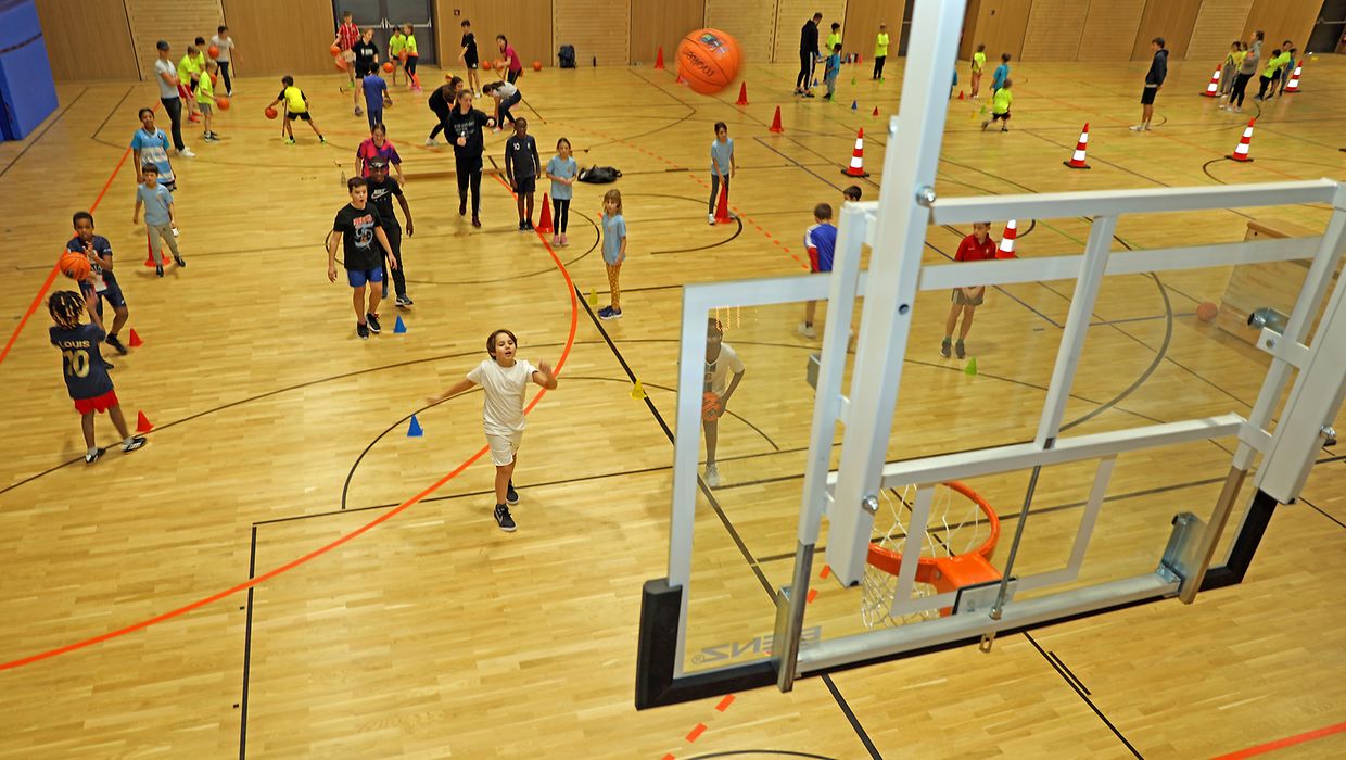 Der Schwerpunkt lag in der Vermittlung eines kindgemäßen spielorientierten Ansatzes zur Förderung des Ballgefühls, des Zusammenspiels und der Spielfähigkeit. Dabei ging es primär darum, die Basket-Zwerge in verschiedensten Ateliers und einfachen Spielformen mit und ohne Ball an den gemeinsamen Mannschaftssport zu gewöhnen. Besonders im Vordergrund stand der Spaß beim Spiel mit Freunden. Mit kindgerechten Übungen konnten die Kids das Dribbeln und das zielgenaue Werfen und Passen lernen und verbessern. Ziel eines Basketballspiels ist es immer, den Korb so oft wie möglich zu treffen. Die Ateliers waren so gestaltet, dass sie einen differenzierten Unterricht für Anfänger und erfahrenere Schüler unterstützten. Das Spielen, vom Eins gegen Eins bis zum Spiel Fünf gegen Fünf, vermittelte individual-, gruppen- und mannschaftstaktische Verhaltensweisen, die auch in anderen Sportspielen von Bedeutung sind. Die Kinder waren mit Feuereifer bei der Sache und alle „geworfenen“ Körbe wurden lautstark bejubelt. Dem spannenden Nachmittag sowie den für jeden Teilnehmer von der FLBB gestifteten kindsgerechten Basketbälle gelang es, bei vielen der Kids ein regelrechtes Basketball-Fieber zu entfachen.
