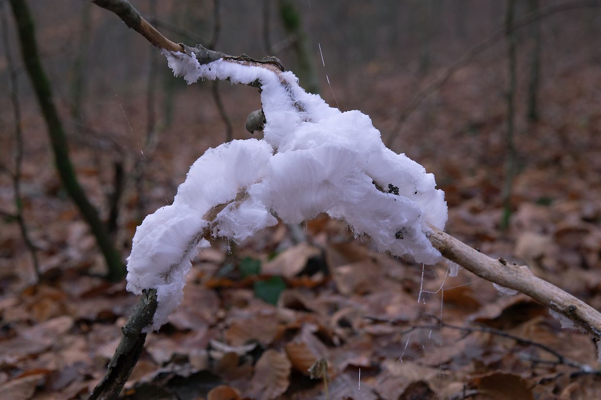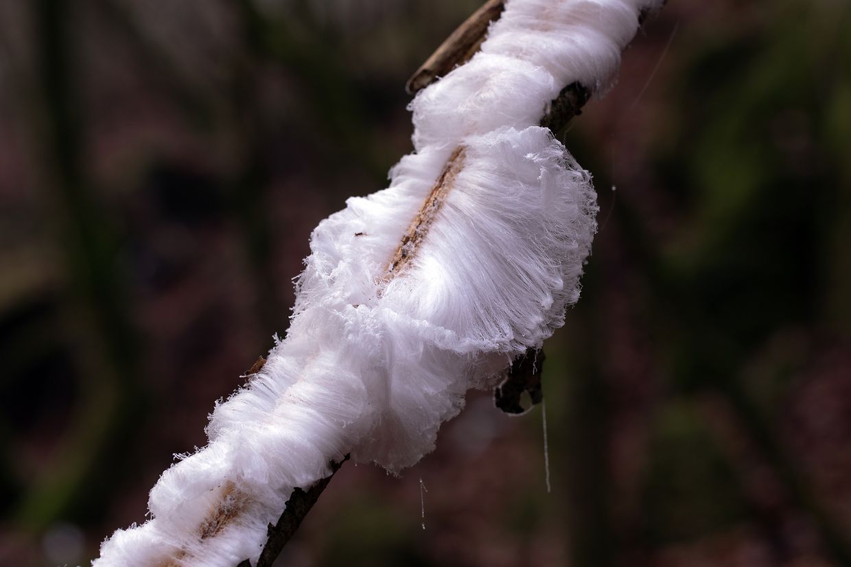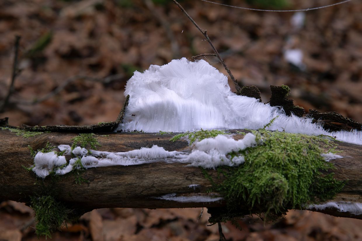 Duerch de Stoffwiessel vu wanteraktive Pilzer am doudegen Holz entsti Gasen déi d'Waasser aus dem fiichten Holz no baussen drécke, wou et direkt fréiert. Doduerch datt weidert Waasser no bausse gedréckt gëtt, an direkt fréiert, wuessen d'Äiskristallen zu laangen Äishoer, déi emsou méi laang gi wéi d'Bedingunge fir d'Kristallisatioun undaueren.