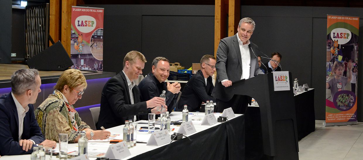 In ihrer Begrüßungsansprache sah die LASEP-Präsidentin Nicole Kuhn-Di Centa das neue ministerielle Maßnahmenpaket „Manner Ecran – méi beweegen, entdecken, erliewen“ als anregende Formel zu mehr körperlichen Aktivitäten in Schule und Freizeit. Die LASEP sagt sich bereit, in enger Zusammenarbeit mit Schule, Maison Relais, lokalen Sportvereinen und Gemeinden dieses ambitiöse Projekt landesweit zu unterstützen.