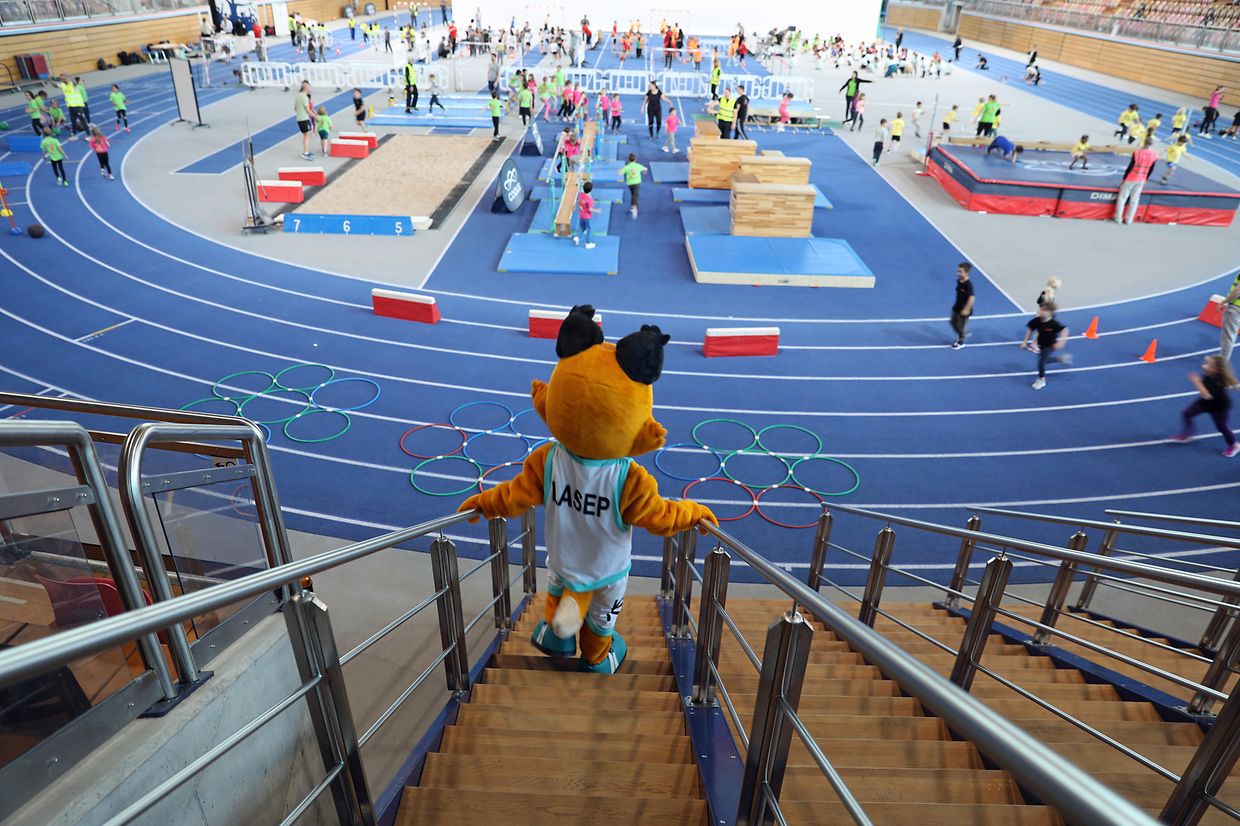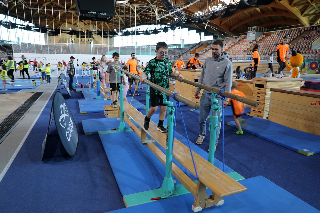 Aus diesen Überlegungen heraus organisiert die „Ligue des Associations Sportives de l’Enseignement Fondamental“ (LASEP) schon seit einigen Jahren in der Coque ihren „ Groussen Butzendag“ für die Jüngsten der Grundschule im Alter von drei bis sieben Jahren. In sieben Bewegungslandschaften in der großen Arena und den langen Gängen bringt Sporty als sportlich aktives Maskottchen einen hohen Aufforderungscharakter. Beim Klettern, Rutschen, Rollen, Krabbeln, Balancieren, Springen und vielem mehr haben die Kinder die Möglichkeit zu eigenständigem Erleben und lernen so, ihre Fähigkeiten einzuschätzen und zu erweitern. Das Angebot mit vielseitigen und altersgemäßen Herausforderungen fördert das Spielerlebnis und die Bewegungsfreude.