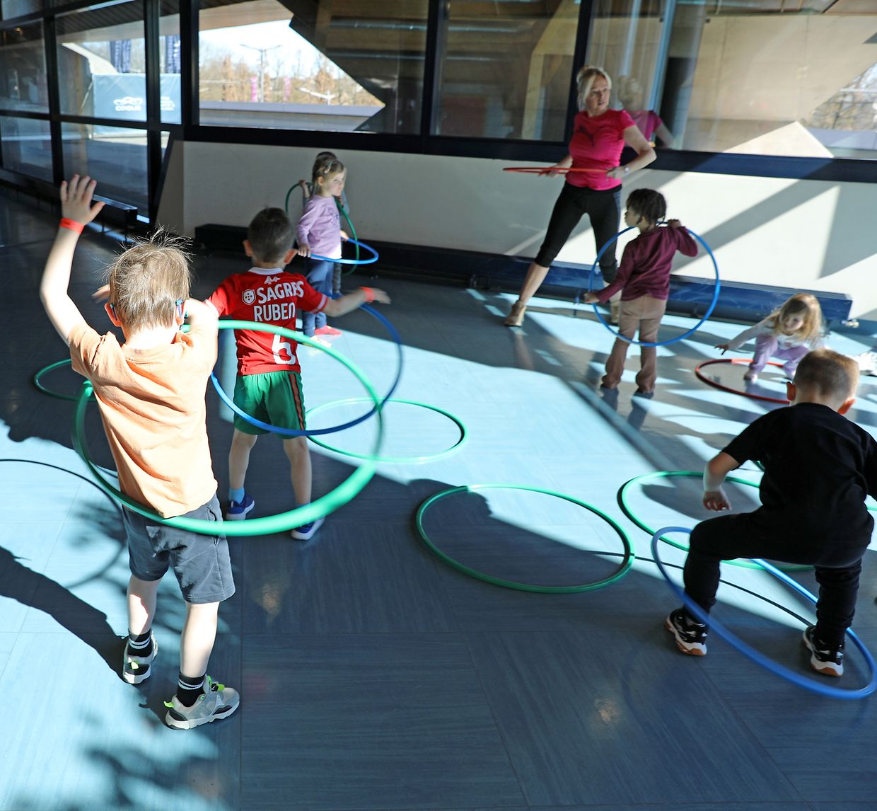 Durch das Einbeziehen mannigfaltiger Sportgeräte, kooperativer Aktivitäten und lustiger Spielformen sind die Bewegungs-Ateliers pädagogisch "besonders interessant und wertvoll". Dabei kommen die Kinder mit zahlreichen Gleichaltrigen in Kontakt und lassen sich gerne von der allgemeinen Bewegungsdynamik anstecken. Sozusagen als „Highlight“ startet zum Schluss ein gemeinsamer Lauf natürlich mit Sporty auf der 200 Meter langen attraktiven Piste rund um die Arena der Coque.