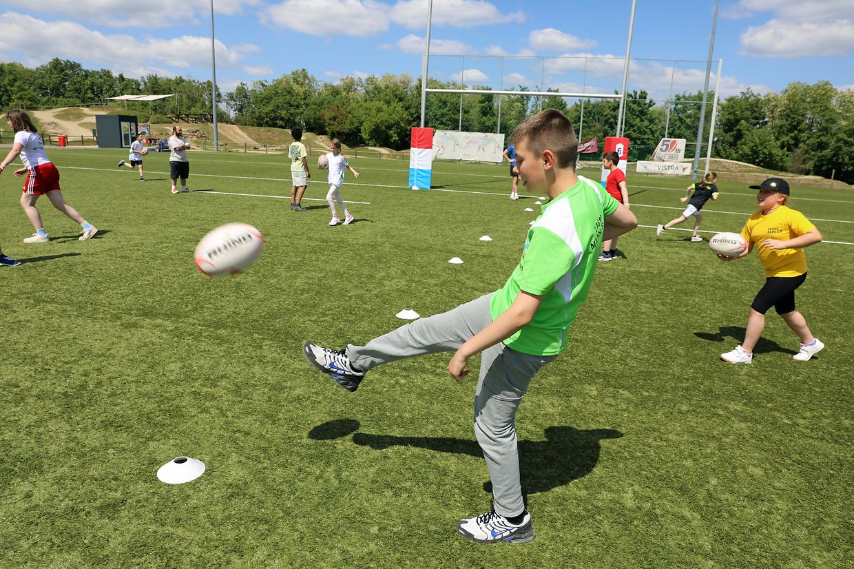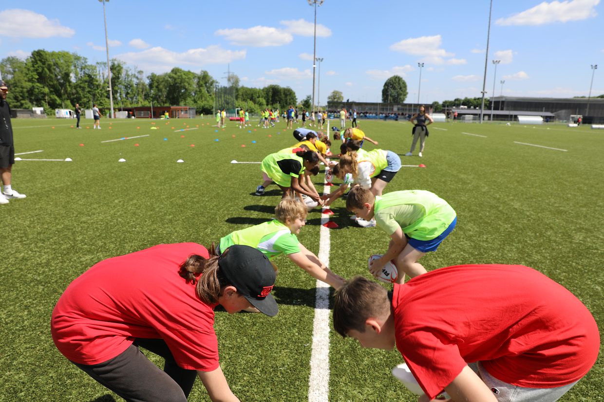 Die Experten, Hockey-Sportdirektor Federico Tanuscio und Rugby-Directeur Technique National Alexandre Benedetti, starteten zu Beginn mit kurzen und knappen Erklärungen der beiden Sportarten, den wichtigsten Begriffen und grundlegenden Regeln, wie gespielt wird und welche Besonderheiten es zu beachten gibt. Für Neulinge kann Rugby oder auch Hockey auf den ersten Blick etwas verwirrend sein. Deshalb konnten die Kinder in jeweils sechs praxisorientierten Ateliers die Grundtechniken für Pässe, Kicks und Tacklings im Rugby sowie die Grundposition und Schlägerhaltung mit Balltreiben und Dribbeln im Hockey aktiv ausprobieren. Bis in die Fingerspitzen begeistert waren nicht nur die Kids, auch die über 25 Lehrer und Betreuer sowie LASEP-Verantwortliche zeigten sich enthusiastisch und ließen Funken schlagen.
