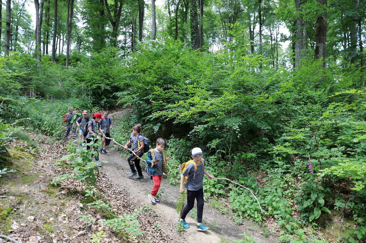 Junglinster: Ganz im Zeichen von Freude an der Bewegung stand neulich der „Spillcross“, zu dem die LASEP Junglinster in enger Zusammenarbeit mit den Lënster Trëppler eingeladen hatte. Rund 450 Kinder unserer Fundamentalklassen starteten zusammen mit 72 Lehrern und Begleitern bei den lokalen Sportinfrastrukturen „op Fréinen“ zu einem abwechslungsreichen Sport- und Spielparcours: egal ob bergauf, flach dahin, auf Asphalt, im Wald, auf Wiesen oder über Stock und Stein, jeder Läufer kam auf seine Kosten und konnte unterwegs über Baumstümpfe springen, an tiefhängenden Ästen hangeln oder auf Stämmen balancieren. Über die vorgegebenen Strecken von 3000 respektive 4000 Metern verteilt waren altersangepasste Natur- und Erlebnisateliers, wo es etliche Aufgaben zu lösen galt und Geschicklichkeit, Sprintschnelligkeit und Treffsicherheit gefragt waren.