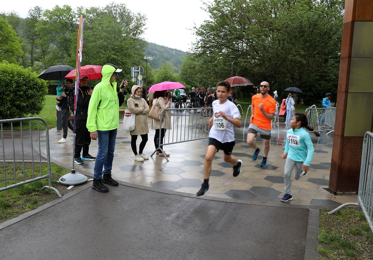 Und dann gibt es das Wettrennen: für viele gibt es nichts Schöneres als ein kompetitives Rennen zu laufen. Im Idealfall kommt der Wunsch vom Kind selbst – „wobei ein kleiner Anstoß von außen auch nicht schadet“, meint der für LASEP-Leichtathletik verantwortliche Yannick Frantz. Der kompetitive Teil der Veranstaltung richtet sich ganz bewusst an sportlich ambitionierte Kinder, die entweder auf eine gute Platzierung laufen oder einfach nur in einem schnelleren Tempo ein besonderes Lauf-Abenteuer genießen wollen. 81 Kids ab zehn Jahre hatten sich eingeschrieben und bekamen eine offizielle Startnummer. Bei allem Wettkampfcharakter wurde den Kleinen aber klargemacht, dass sie zwischendurch ruhig gehen können und dass auch ein Aussteigen aus dem offiziellen Wettrennen überhaupt kein Problem ist. In den einzelnen Alterskategorien hatten die Nase vorn Alecx Scarlett Pascual aus Steinsel, Rodrigue Boreux-Noirfalise aus Reuler, Emma Siegel aus Bascharage, Eric Hruban aus Steinsel und Iker Leonardo Segavic Folques aus Ettelbrück.