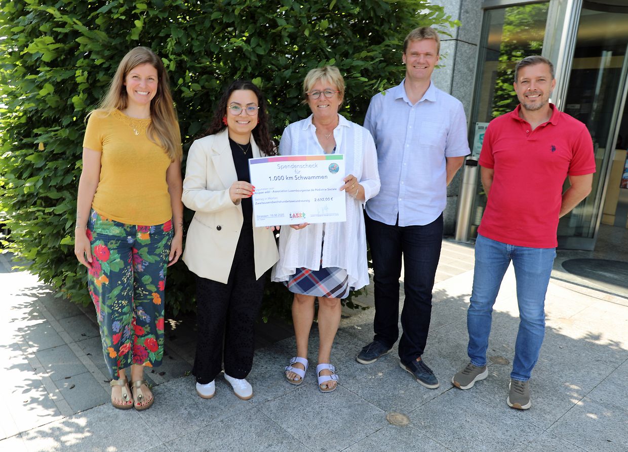 En remplacement de cadeaux pour les efforts sportifs fournis lors de l’action „1 000 Kilometer Schwammen“, la LASEP a décidé d’un commun accord de soutenir deux associations sociales par un don calculé sur le nombre de kilomètres, - 2 692 km effectivement nagés par les enfants - en raison de deux euros par kilomètre.