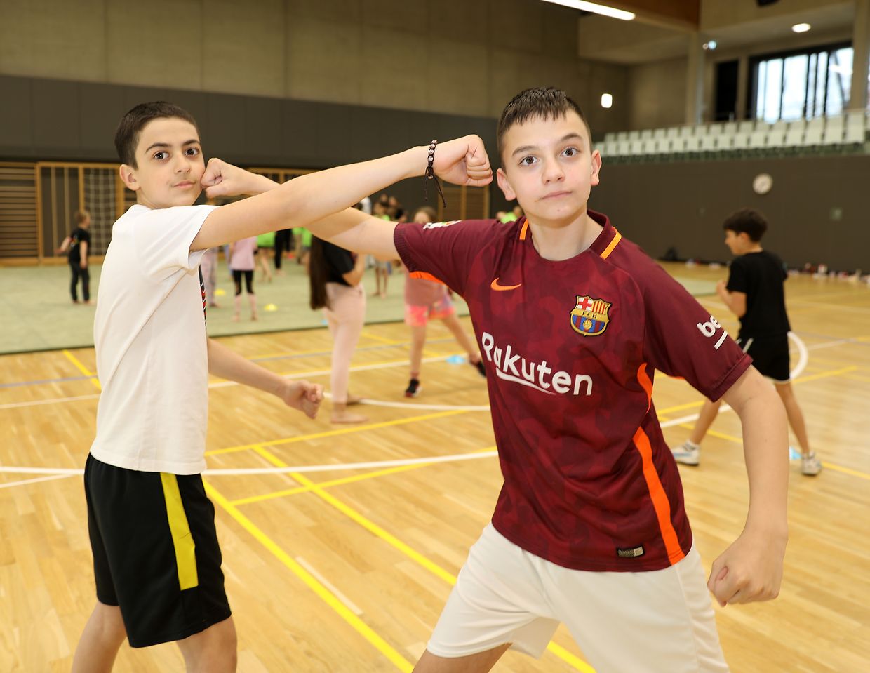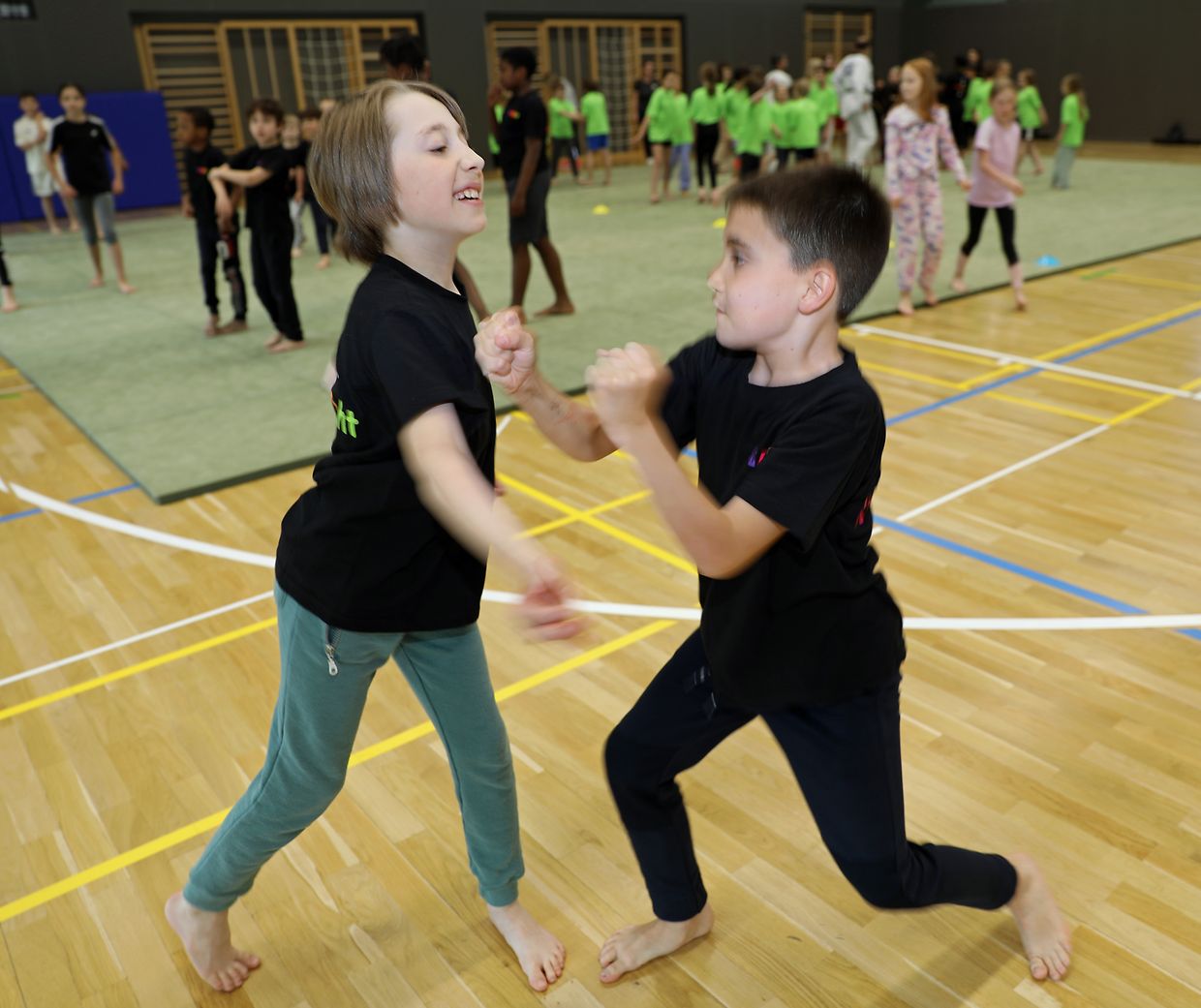 Eine kindsgemäße Einführung in leicht zu erlernende Techniken soll den Kids helfen, Mobbing oder drohende Gewalt mit dem erforderlichen Eigenschutz zu begegnen ohne sich von den eigenen Gefühlen wie Stress und Angst blockieren zu lassen. Besprochen und geübt wurden Gegenstrategien zu Verbalattacken sowie die Verteidigung gegen Handgelenkgriffe, das Befreien aus Festhaltumklammern, das Ziehen an den Haaren, ungewolltes Antatschen und den Widerstand gegen mehrere Gegner. In einem angepassten, altersgerechten Rahmen und in einer Kombination aus Rollen- und Bewegungsspielen wurde spielerisch das Selbstbewusstsein trainiert. Zentral dabei ist, dass die Kinder lernen, für sich einzustehen, gerade und entschlossen dazustehen und durch laute Stimme, Mimik und Gestik dem Gegenüber klar zu signalisieren „Stopp, mit mir nicht!“