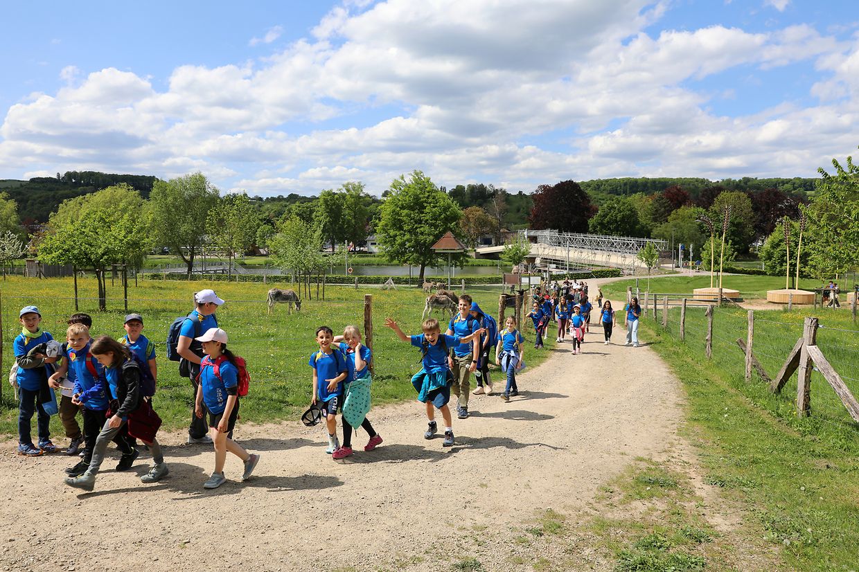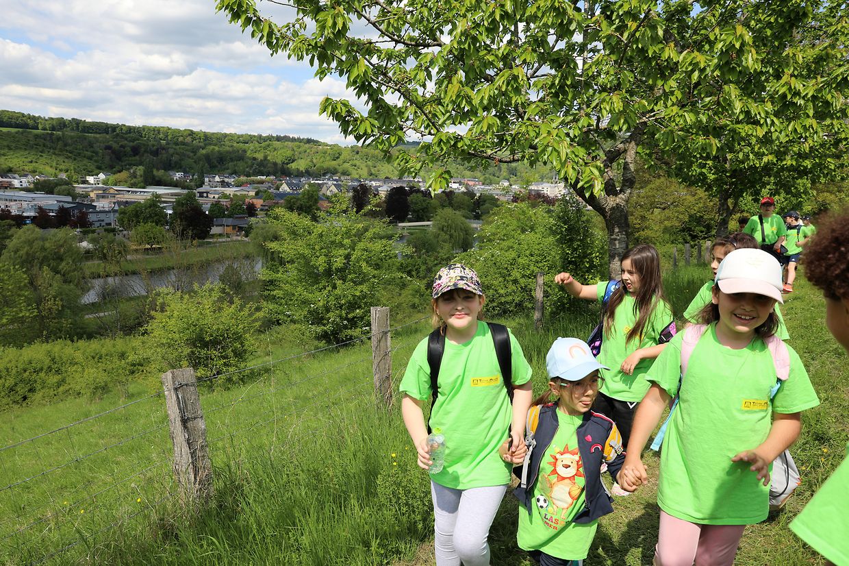 Diekirch: Ausgehend vom Wahrzeichen der Stadt Diekirch, dem „Dikricher Iesel“ hatten die LASEP-Verantwortlichen Steve Marx und Roger Klein beim diesjährigen „Spillcross“ einen Erlebnisparcours aufgebaut, an dessen Wegesrand sich einheimische Wildtiere wie Fuchs, Dachs, Hase oder auch Eule versteckten. Bei herrlichem Frühlingswetter waren die 560 teilnehmenden Kinder unserer Fundamentalschulen eingeladen, auf den beiden 3,5 bzw. 5,5 Kilometer weiten Rundwegen zusammen mit ihren Lehrern und Begleitern die Tiere in Feld und Wald zu entdecken und zu erkennen. Natürlich führte der Lauf an fünf Vertretern der Diekircher Eseln in Lebensgröße vorbei, die sich bewundern und streicheln ließen. Allseitige Anerkennung gab es für den technischen Dienst der Stadt Diekirch, der die Wegstrecke hervorragend und kindsgerecht vorbereitet hatte.