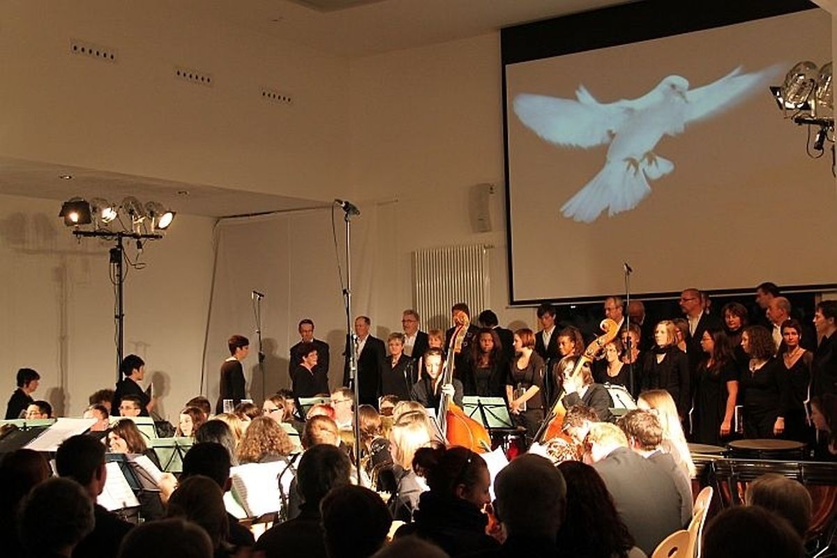 In der Musik spiegelten sich die Epochen der kriegerischen Vergangenheit Europas wieder . Das Nebeneinander von alten und neuen Musikstilen sorgte für effektvolle Kontraste. Ekstatische Ausbrüche, mitreißende Rhythmen und beklemmende Passagen der Stille prägten die hohe emotionale Wirkung dieser Friedensmesse.