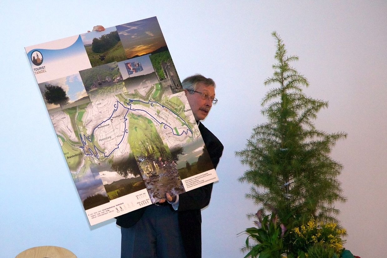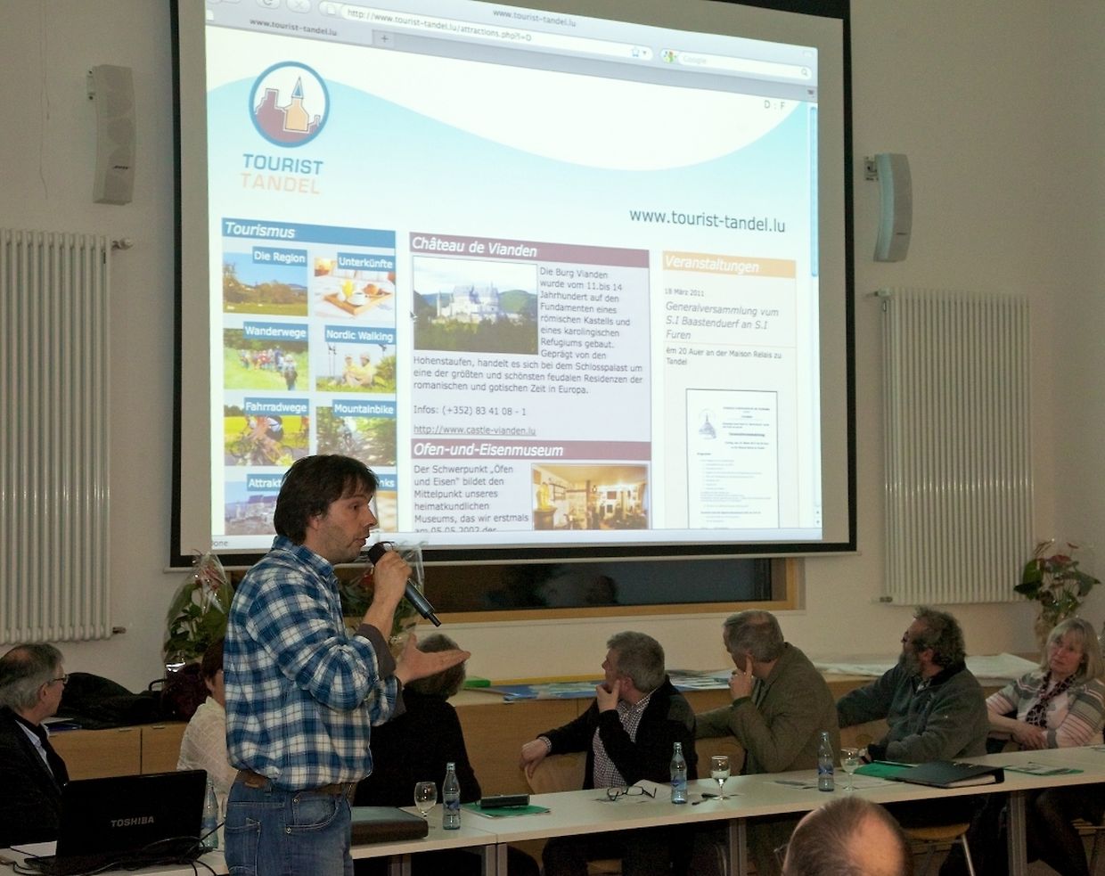 Fränk Coenjaerts und Pol Gleis stellten anschließend die von ihnen erstellte und sehr übersichtlich gestalltete neue Internetseite www.tourist-tandel.lu der beiden Syndikate der Tandeler Gemeinde vor, derweil Claude du Fays die neuen, von den beiden Vereinigungen entworfenen Wanderwege-Tafeln präsentierte.