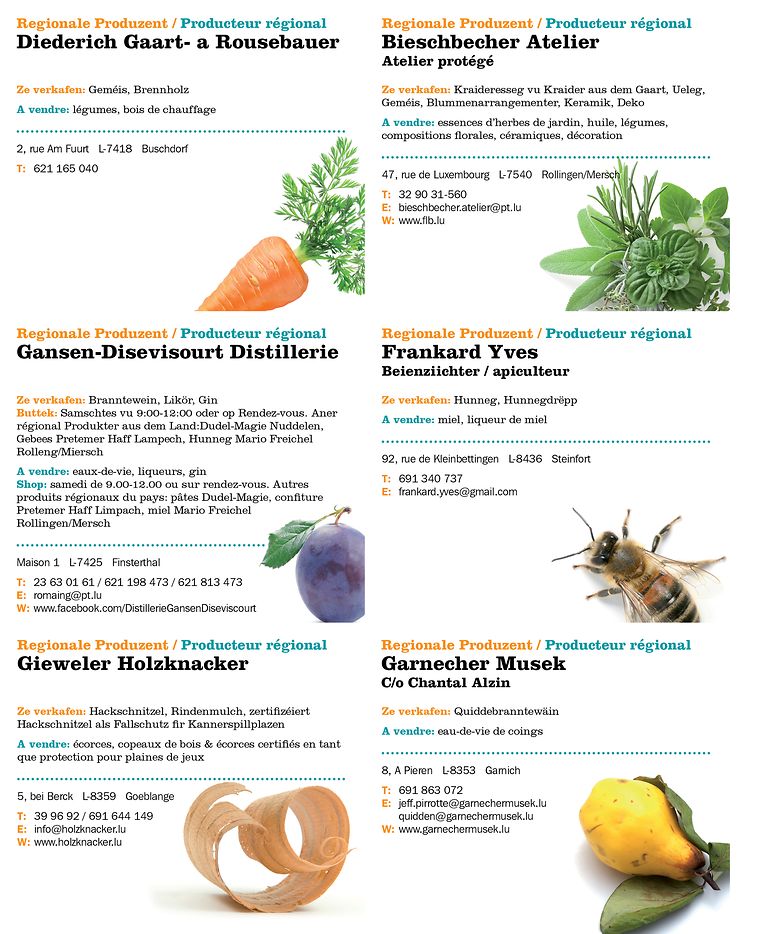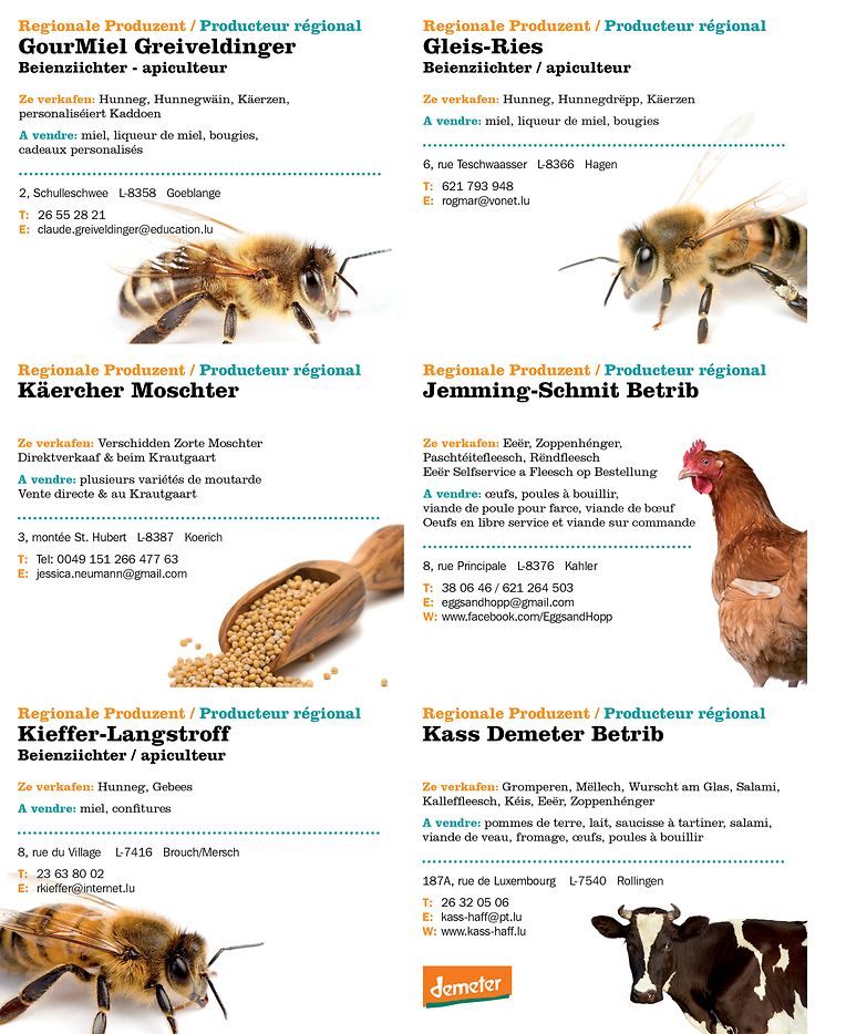Déi nei Editioun steet ganz am Zeeche vun der Landwirtschaft an de regionale Produzenten. Praktesch fir de Konsument sinn d’Säite mat den Direktvermaarter déi ee ka raustrenne fir se grëffbereet ze hunn. Natierlech gitt dir och eppes gewuer iwwert déi lafend LEADER Projeten. Wéi gewinnt fannt dir och d'Rubrik "Dëst an dat" an natierlech och eise Quiz, wou et flott regional Präisser ze gewanne gëtt.