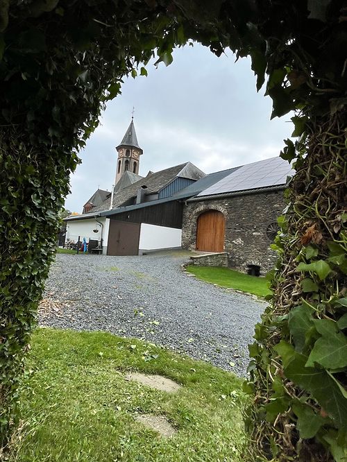 Die Kirche wurde im Jahr 1927 nach Plänen des Architekten Joseph Jentgen im Art-Deco-Stil erbaut, an der Stelle der alten Kirche, welche abgerissen wurde. Es handelt sich um eine atypische, sehr seltene Architektur für Luxemburg. Der Glockenturm ist achteckig ud die Kirche verfügt zusätzlich über zwei kleinere Türme beidseitig des Eingangsportals. Der Grundriss ist oval; diese Form wird durch die Strukturelemente an der Decke noch verstärkt. An der Außenwand ist teilweise sichtbarer Schiefer aus den Ardennen, die Fenstersteine sind aus rotem Sandstein, was untypisch für diese Gegend ist.