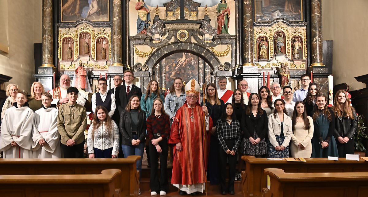 Samsdig, den 4. Februar 2023 guefen 20 Jonker an der Parkierch zu Ëlwen gefirmt. De Kardinol Jean-Claude Hollerich guef viran der Kierch empfangen van de Geestlechen Michel Meyer, Maurice Péporté, Manuel Siebenbour, dem Diakon Alvaro Moreira an der Pastoralreferentin Ingrid Scholzen, dem Pastoral- a Kiercherot van der Par EWe an de Vertrieder aus de Gemengen Elwen an Wäiswampich. D‘ Präsidentin van der Par Marianne Meyers begréisst den Kardinol an ee Kand iwwereecht him ee Bouquet Blummen. De Motto van der Firmung „Ënnerwee an eng Nei Zäit“ guef van 2 Jonken erklärt. Mat dem Szenenspill „Sou fillt sich den Hëlligen Geescht an“ konnten die Jonk an de Paschtouer d’Kraaft vam hëllgen Geescht verdeutlichen. No der Predigt guefen die 20 Firmkandidaten dem Kardinol virgestallt. Bei der Firmung halen d‘Firmgiedel Viviane Thelen-Backes an de Firmpätter Manfred Scholzen hir Hand op d’Schëller vam Firmling als Zeechen fir hir Ënnerstëtzung. De gelongenen musikalischen Encadement van der Firmungsfeier guef van der Jugendchorale Adesso Special an de Puzzles iwwerholl. No der Firmung hat d’Gemeng Ëlwen op eng Réceptioun am Centre Culturel invitéiert.