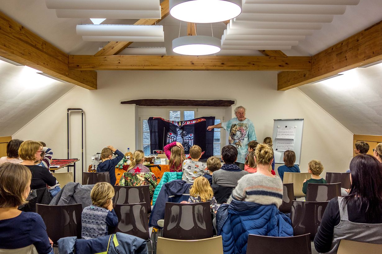 Vor gut gefülltem Saal konnte er mit seinen Geschichten über wilde Tiere aus Afrika oder über die Indianer aus Nordamerika, Jung und Alt begeistern. Seine Erzählweise, untermalt mit Musikeinlagen und Zaubertricks, weiß die Zuhörer zu fesseln.