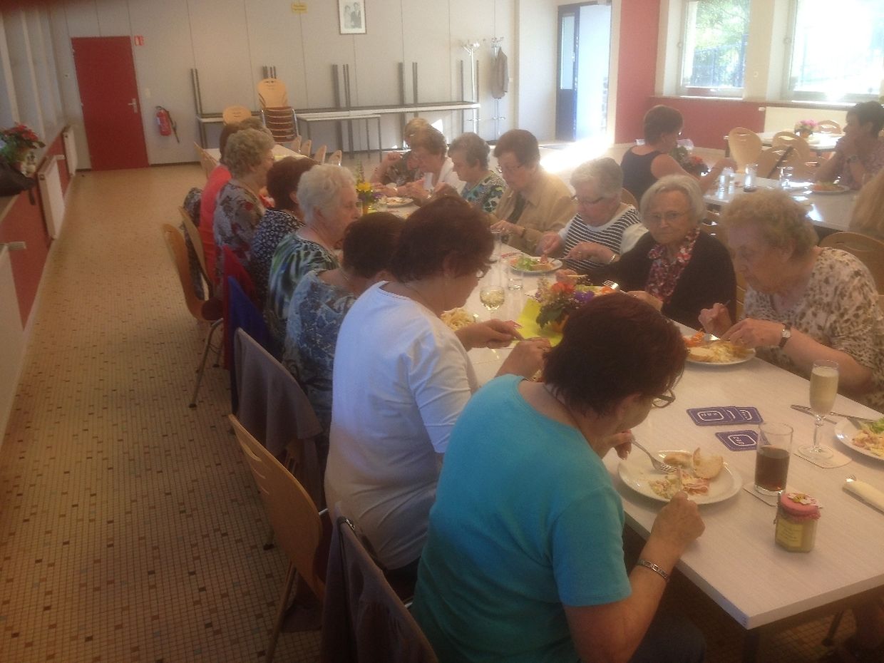 Am Freitag, dem 6. Juni hatte der Vorstand zur traditionellen Muttertagfeier eingeladen – und dies mit Erfolg: rund 60 Mitglieder hatten sich eingefunden um dieser Veranstaltung beizuwohnen – unter ihnen auch die Vertreter des Gemeinderates Sonja Siebenaller-Aubart, André Dumont und Romain Plümer. Wie in den Vorjahren hatten die Vorstandsmitglieder keine Mühen und Kosten gescheut, um den Müttern zu ihrem Ehrentag etwas Besonderes zu bieten. Nach der Begrüßung wurde das Büffet eröffnet und die geladenen Gäste waren alsbald voll des Lobes für die feinen Delikatessen, die dort geboten waren. Zwischenzeitlich wurden die Lose der Tombola verkauft und die Glücksfee in der Person vom jungen Joel Bras sorgte dafür, dass zum Schluss niemand mit leeren Händen dastand. Zahlreiche Sponsoren, welche im Laufe des Jahres zu den Geschäftspartnern des Vereins zählen, hatten allerlei Geschenke zur Verfügung gestellt, so dass bunte Pflanzen, schöne Dekorationsobjekte und nützliche Haushaltartikel auf neue Besitzer warteten. Diesmal war bei der Einladung auf eine besondere Überraschung hingewiesen worden und diese sollte ihren Zweck dann auch erfüllen. Anstatt einer Vielzahl von üppigen Nachtischsangeboten gab es diesmal einen riesigen Muttertagskuchen vom Konditormeister. Die Anwesenden staunten nicht schlecht über diesen Abschluss des Büffets und gemeinsam verbrachte man noch einige gesellige Stunden in froher Runde.