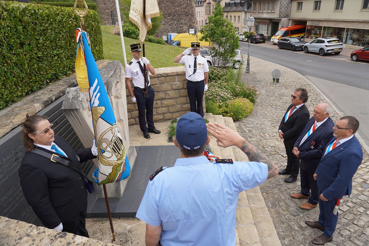 Den offizielle Festakt war nom Te Deum beim „Monument aux morts“, wou eng Gerbe niddergeluecht gouf.
