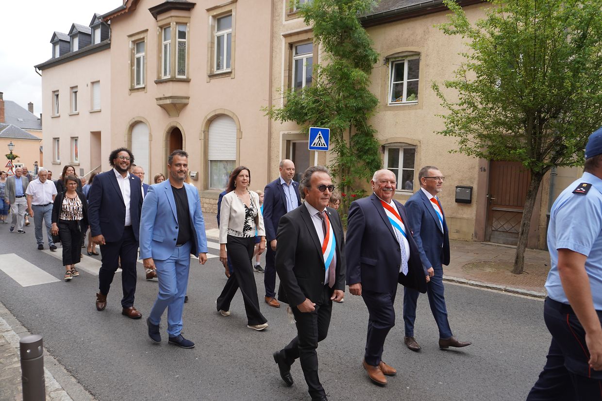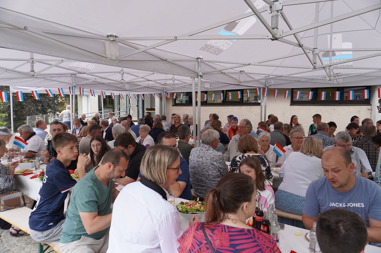 D’Usprooch vum Buergermeeschter an d‘Medailleniwwerreechung goufen am Buerg-Haff ofgehalen. D’Gemeng hat uschléissend op e Frëndschaftspatt op der Tit Schroeder Plaz invitéiert.