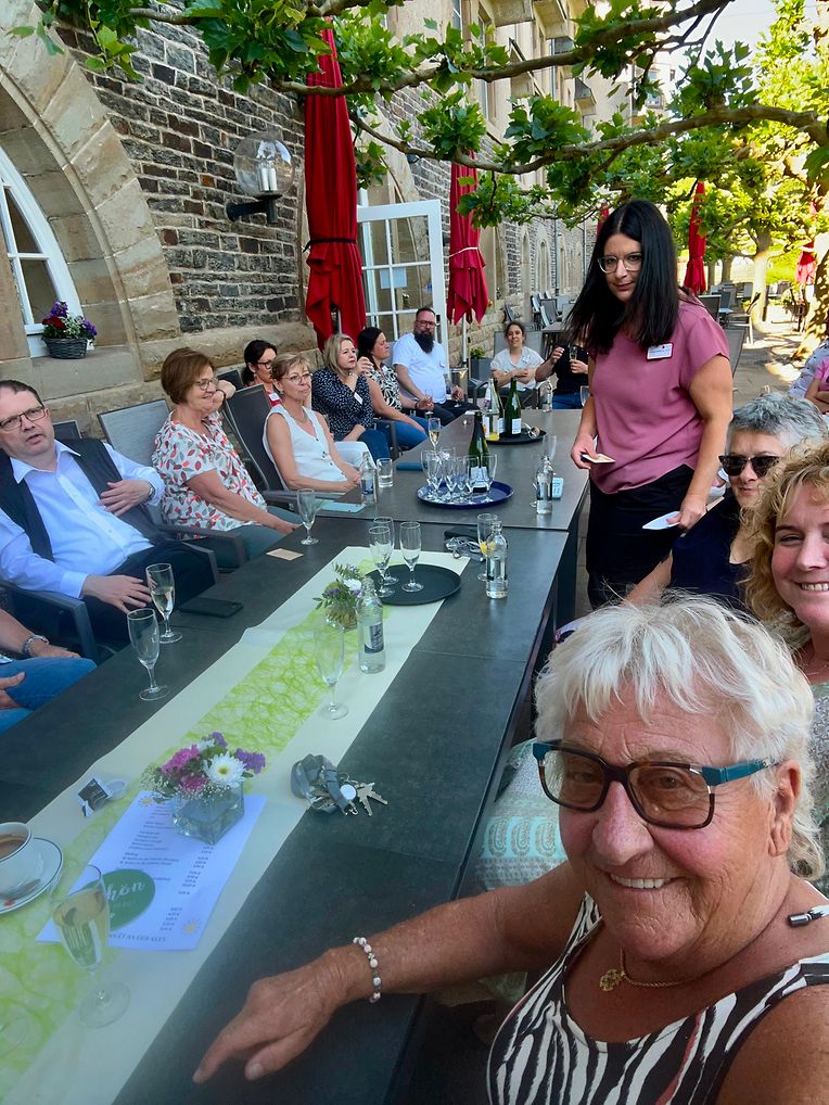 Fir de 40. Gebuertsdag haten sech, béi herrlichem Fréijoorswiäder, niäft de Membere vun der Amicale an de Matuarbichter, ganz vill Bewunner mat hire Familjen fir e gemeinsaamt Mëttigässen afont. Am Schiäd vun de Platanen op der Terrass vum fréiere Sanatorium honn d’Leit, béi flotter Musik, en ofwässlungsréichen Nomëttig verbroocht.