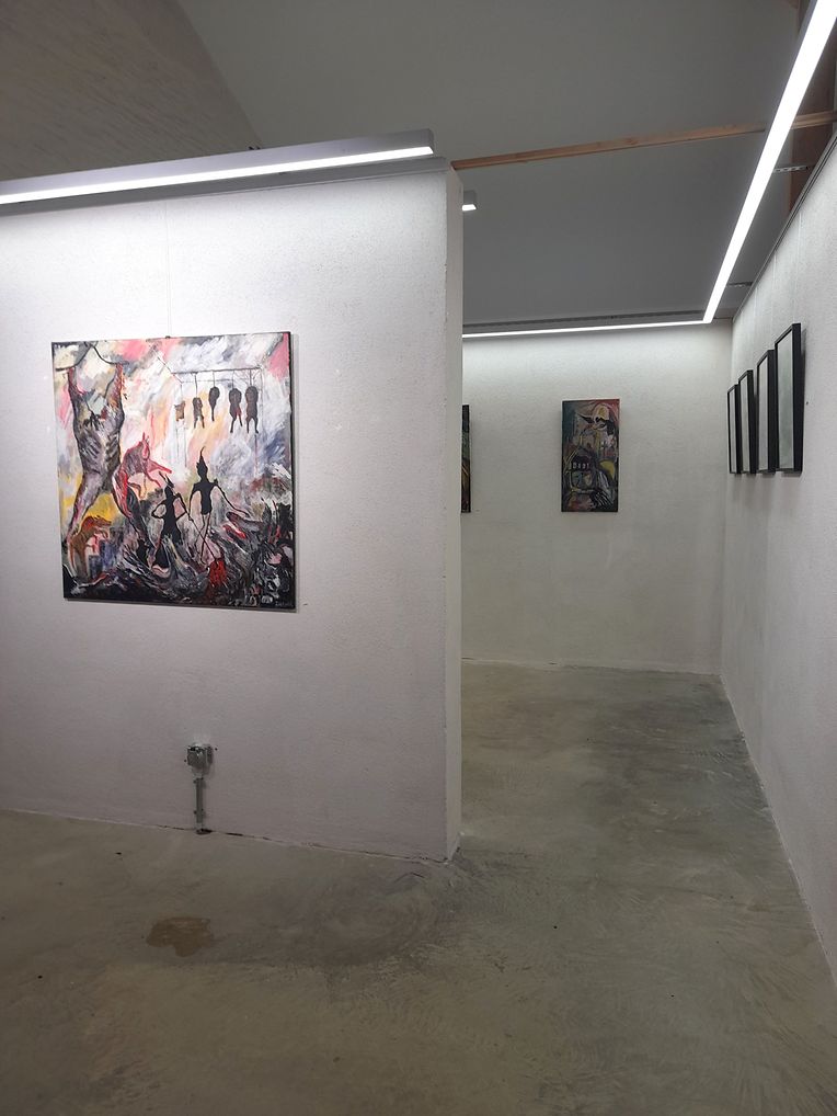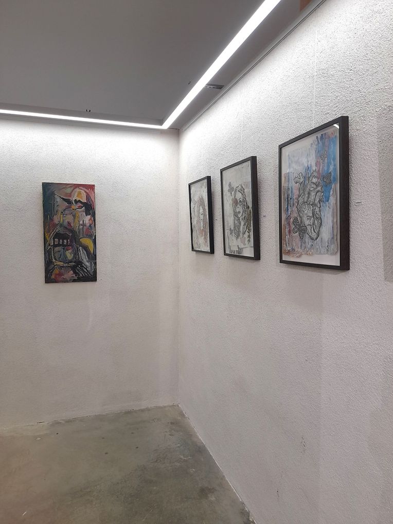 L'artiste peintre, activiste et performeuse Liza Sterligova-Diederich est née en 1997 à Moscou en Russie et membre de l’atelier des artistes en exil à Marseille. Ses huiles sombres sont en contraste avec l'art de Miriam R. Krüger, ayant comme sujet la mort et la souffrance, mais aussi l'espoir et la rédemption, qu'elle sympolise par la figure d'Anubis.