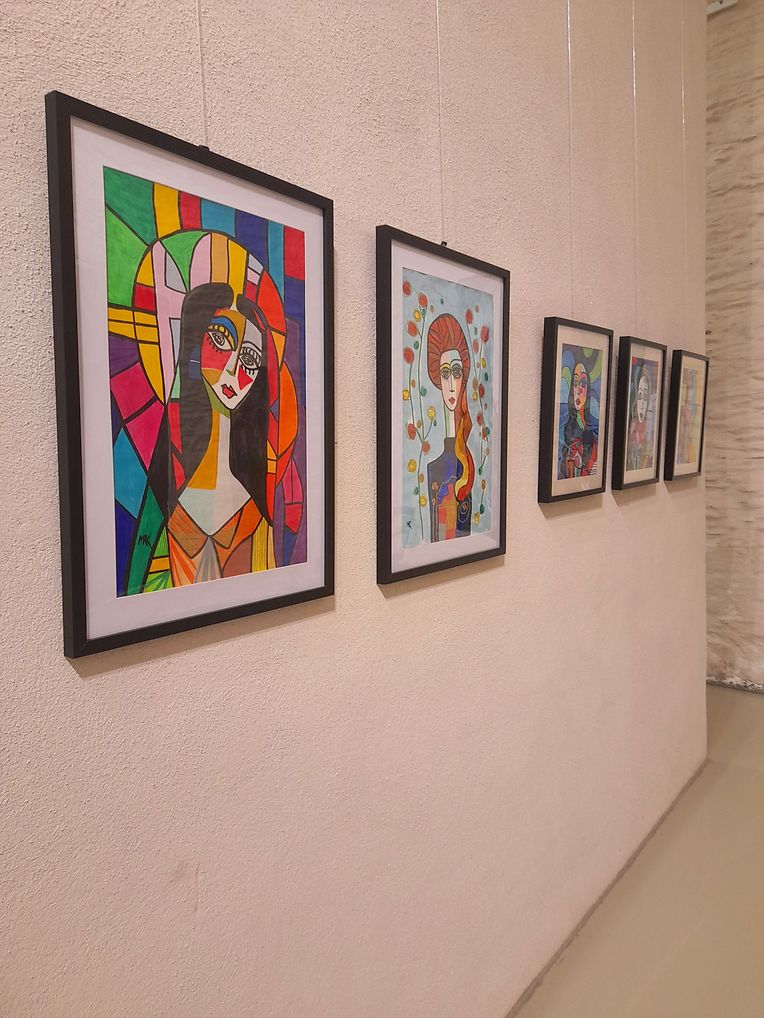 Miriam R. Krüger, peintre, poète et photographe, expose des peintures à l'encre et à l'acrylique ainsi que des collages et techniques mixtes montrant des portraits de femmes, des anges et des nus. Ses oeuvres douces et multicoles offrant un regard profond sur la condition féminine et les émotions qui la traversent.