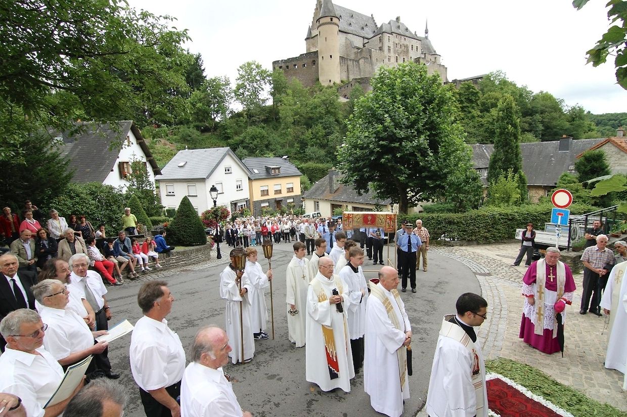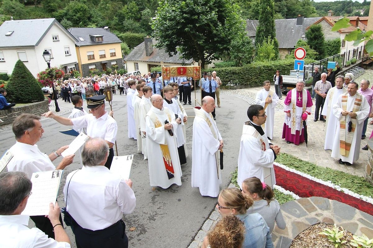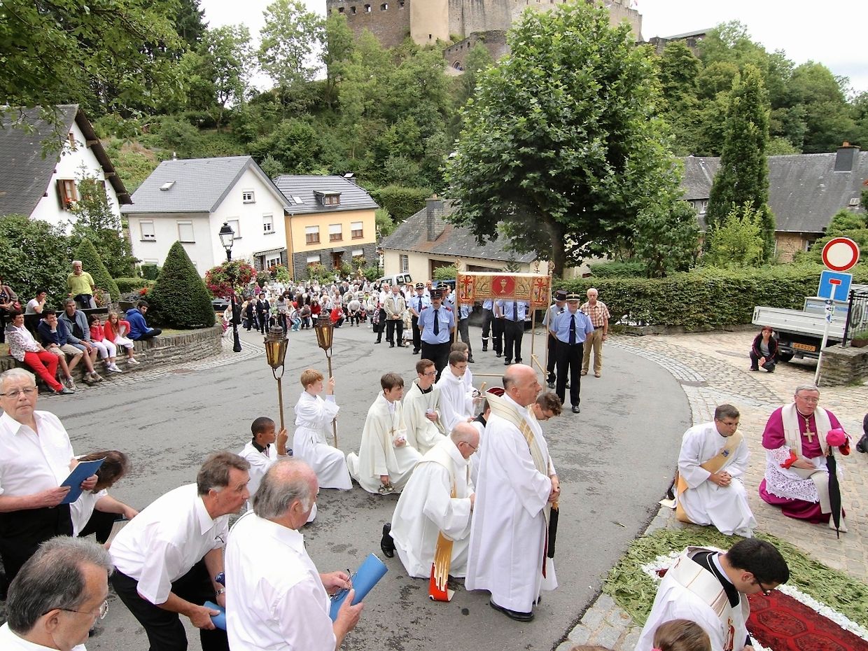 Seit über 160 Jahren findet in Vianden am Sonntag nach Maria-Himmelfahrt die Bildchen- und Rochiprozession statt. So auch heute, wo ungezählte Marienverehrer bereits am Vormittag dem feierlichen Pontifikalamt, dem Erzbischof Jean-Claude Hollerich vorstand, beiwohnten, um dann am Nachmittag in einer feierlichen Prozession von der Trinitarierkirche aus, an hohen Abhängen vorbei durch den „Bildchensbësch“ hin zur herrlich gelegenen, 1848 errichteten Kapelle und wieder zurück zu pilgern.