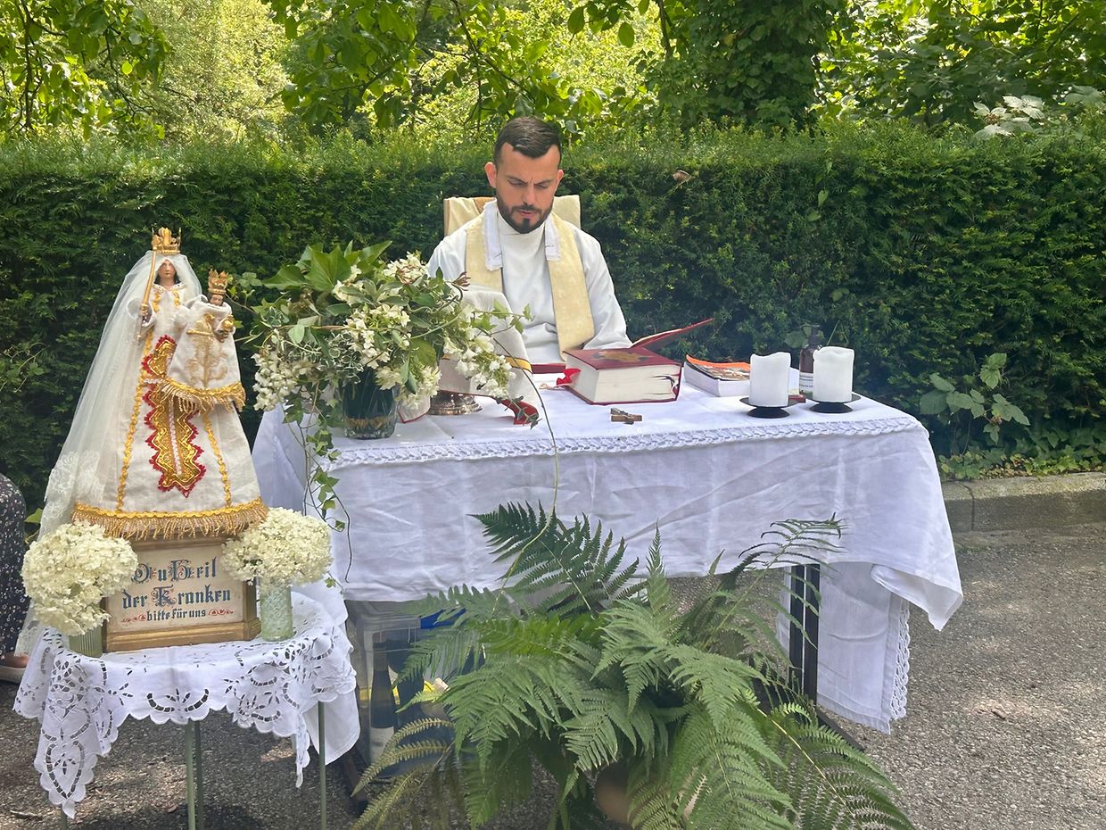 T'Danksagungsmass, wi de Kaplon Diego de Lima se genannt hott, hat e spezielle Flair ënnert dem Schiäd vuam Nëssert. Su war de Gästlichen och voll des Luefs fir di wichtig Missiunssuarbicht, déi de Veréin iwert d'Joren läst an et zousätzlich fierdig bringt fir e wonnerschinne Bloumentapis fir d'Härléicheprëssessiunn ze zauberen.