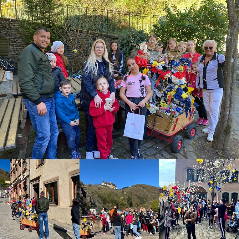 Da dieser ‘Jaudes-Umzug’ in den letzten Jahren, vor allem in der ‘Gaass’, ein bisschen vernachlässigt wurde, war es eine willkommene Abwechslung für die ukrainischen Kinder und ihre Familienangehörigen, die in der Viandener Jugendherberge untergebracht sind, diese Rolle an Karfreitag zu übernehmen.