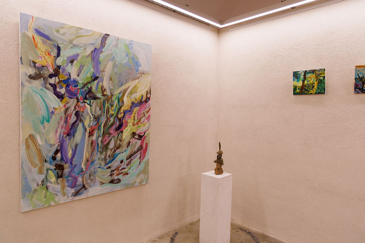 Asta Kulikauskaitė präsentiert Malereien über das Zusammenspiel von Natur und persönlicher Identität, Rol Backendorf eine Installation aus Steinskulpturen, mit Steinen aus der Our, die in einem Spiel mit dem Gleichgewicht zusammengesetzt sind.