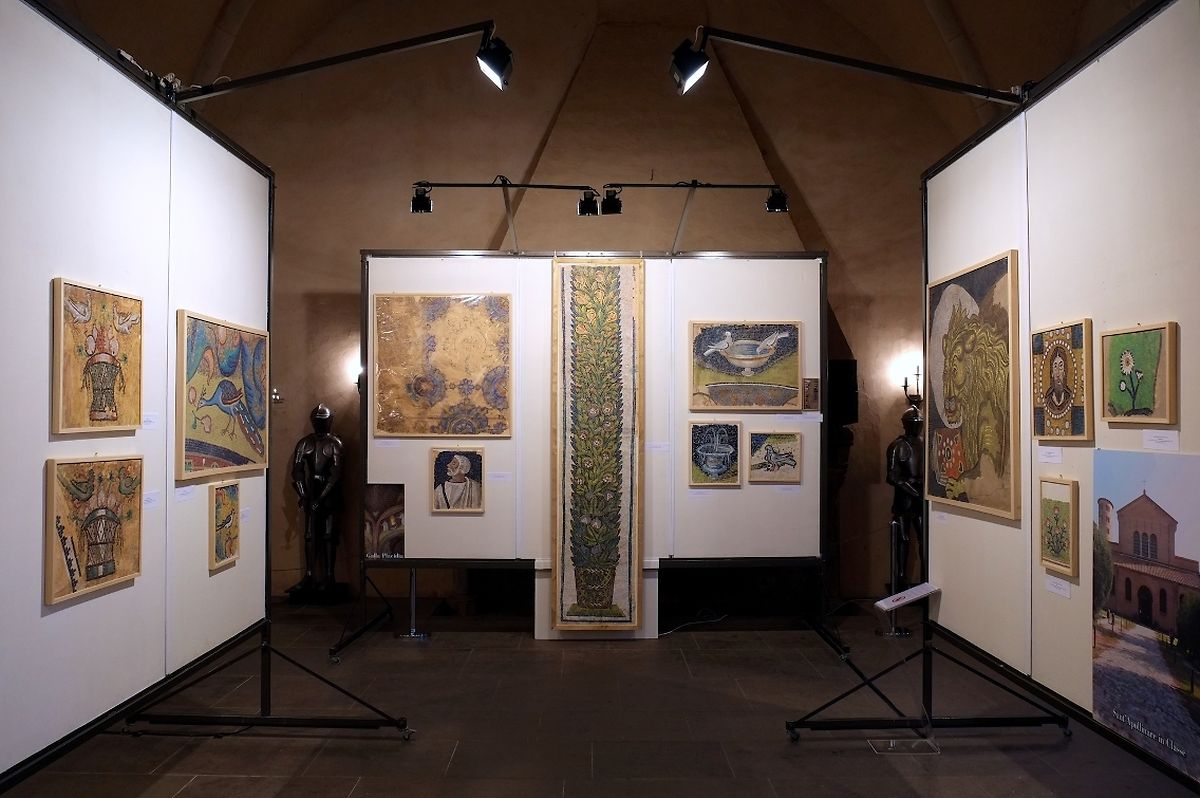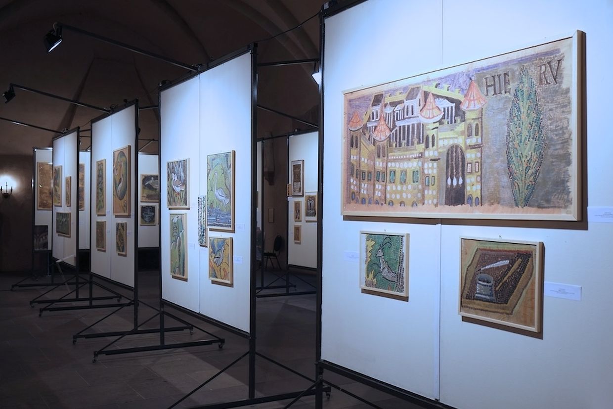 Die „Künstlerisch innovative Ausstellung von kulturhistorischer Wichtigkeit“, wie Dr. Paul Stepanek es auf den Punkt brachte, zeigt Zeichnungen auf sehr feinem Transparentpapier, direkt von den monumentalen Mosaiken abgezeichnet und mit Aquarell in den original Farben bemalt und auf Keilrahmen aufgezogen. Außerdem beinhaltet sie einige handbemalte Gipsabdrücke von Mosaiken, um das Relief der Mosaiksteinchen sowie die Wölbung der Decken zu dokumentieren.